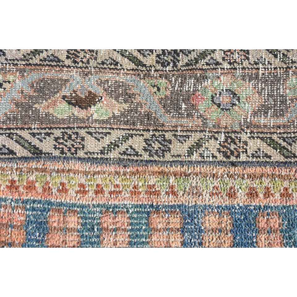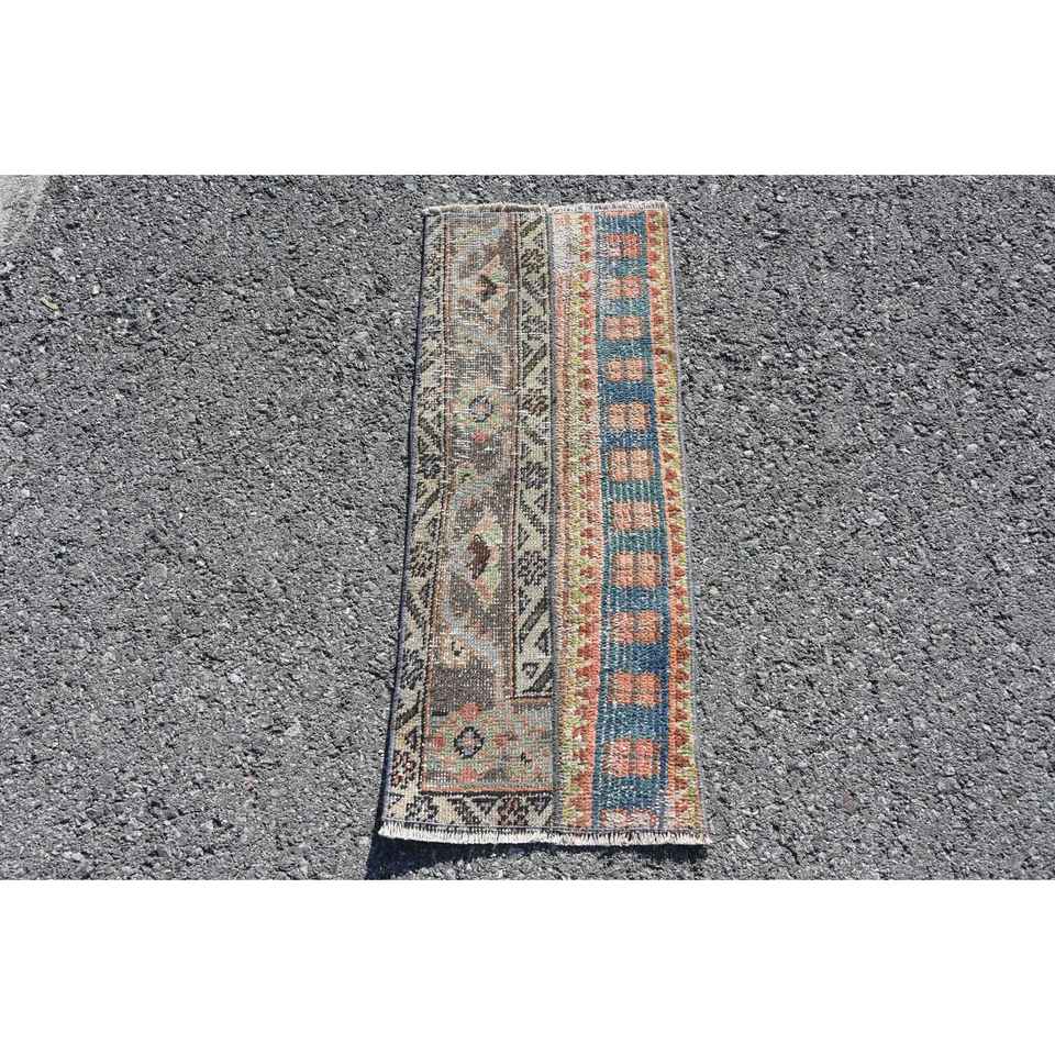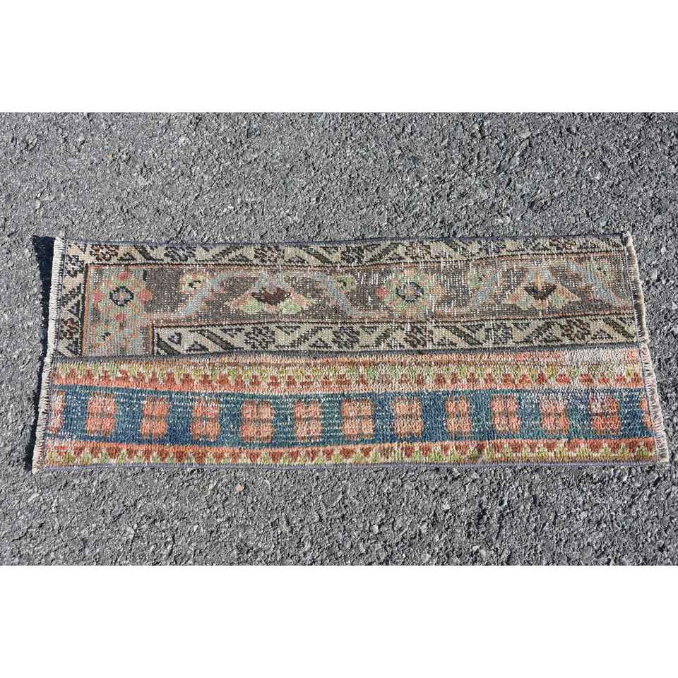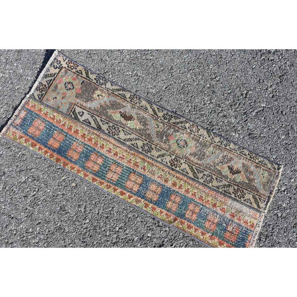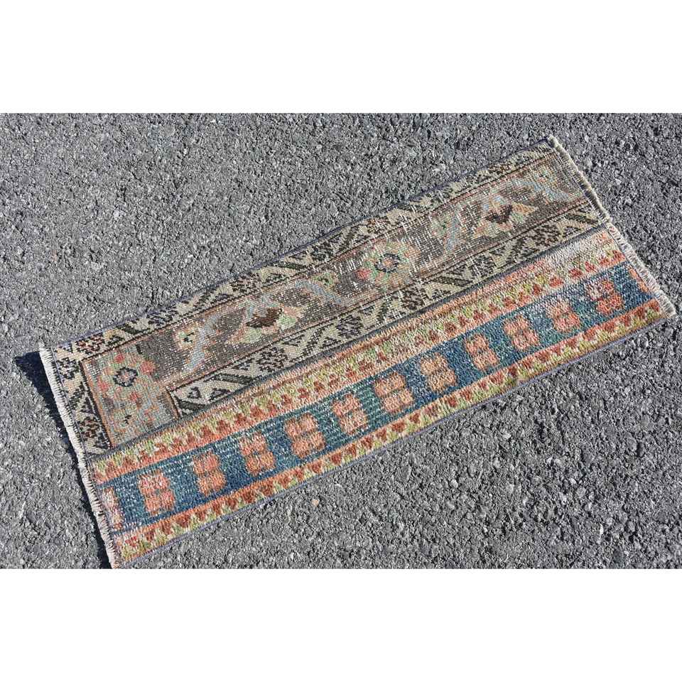 Alfombra Turca de 1.1x2.8 pies, Alfombra Azul de Estilo Suroeste, Alfombra de Lana