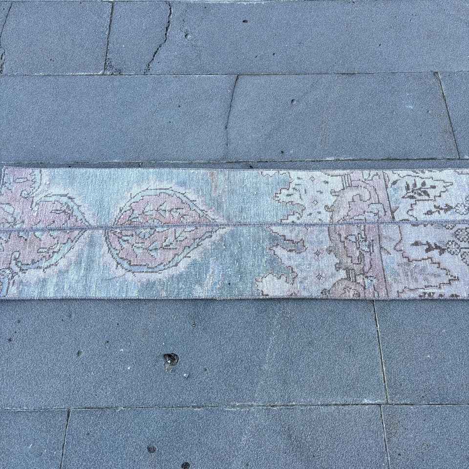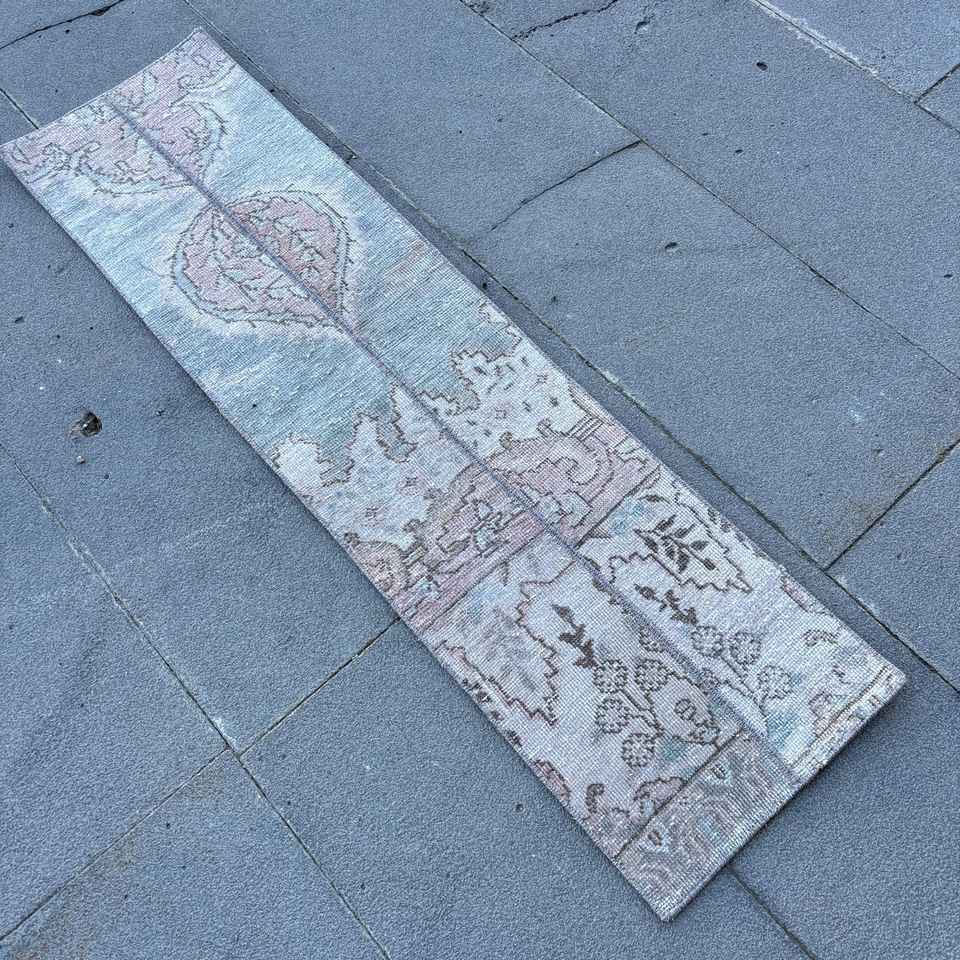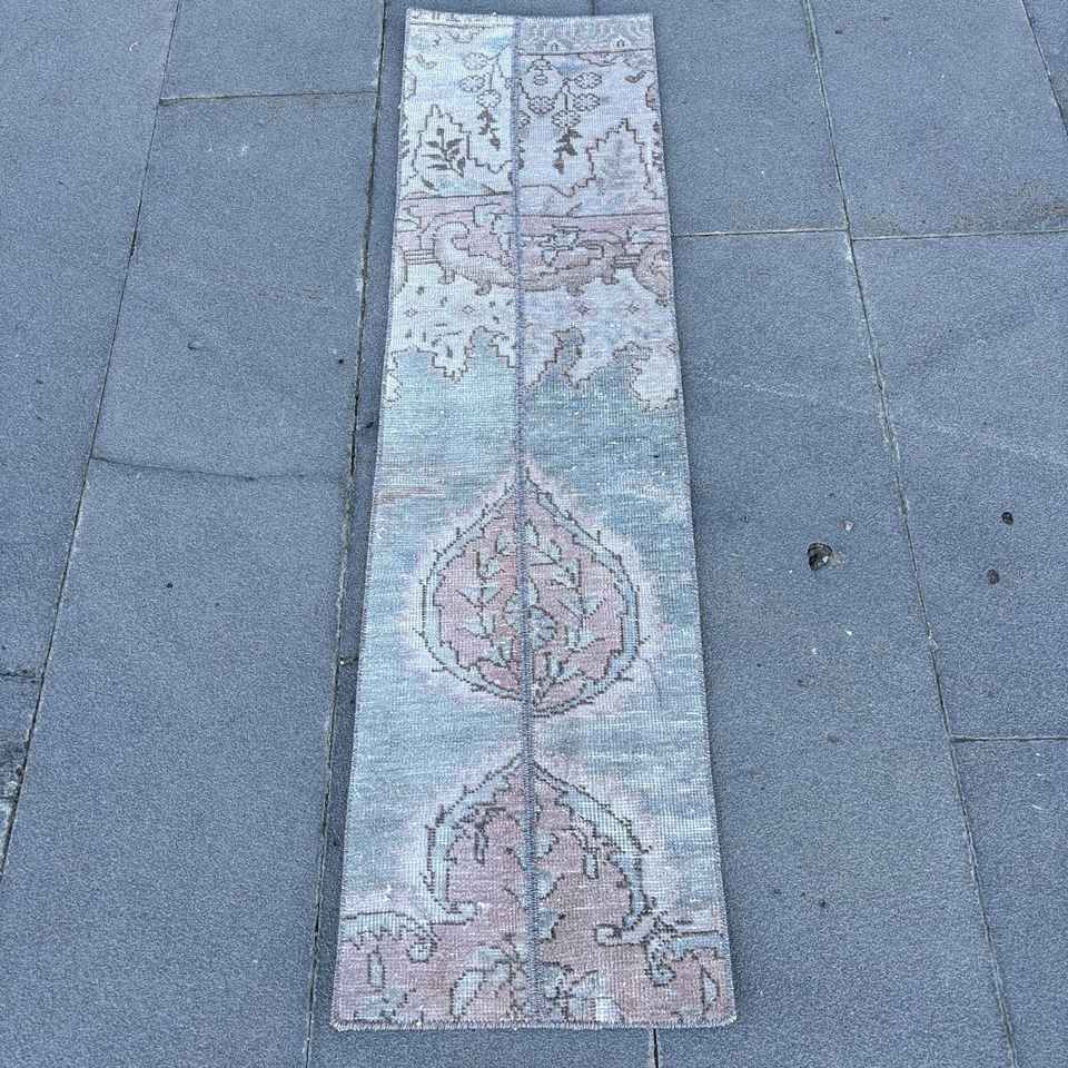 Alfombra turca de 1.1x4.3 pies, alfombra vintage de lana con motivos de plantas y árboles azules