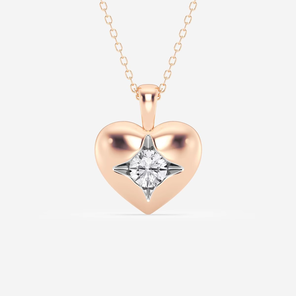 Colgante de Moda con Diamante Cultivado en Laboratorio de 1/2 CTW, Forma de Corazón, Oro de 14K, Lindo Collar con Diamante en Forma de Corazón, Joyería de Regalo