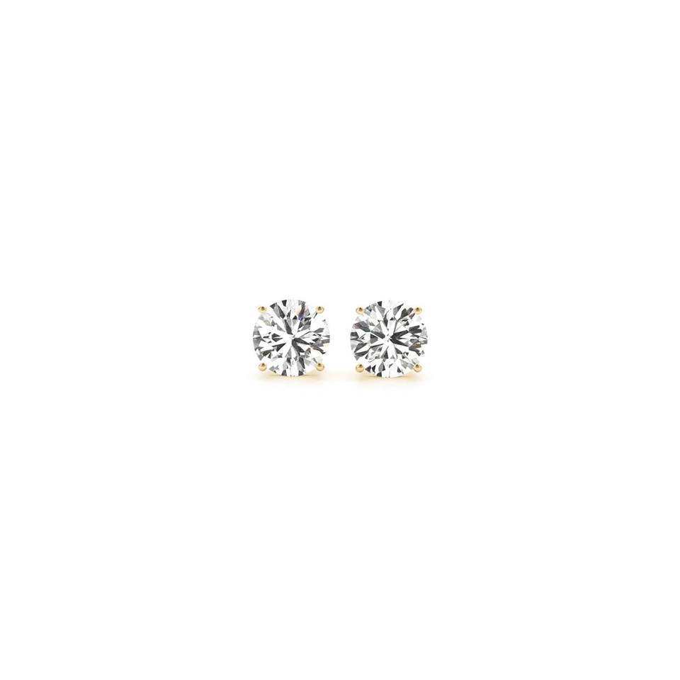 Pendientes de botón de moissanita redonda cultivada en laboratorio de 1/2 quilates en oro amarillo de 14k (G/VS2)