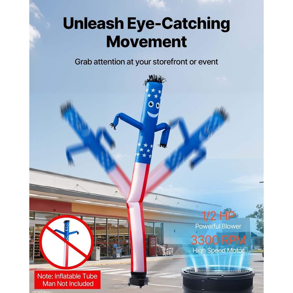 Ventilador inflable de tubo de 1/2 HP y 370W, modelo PP, con diseño de tubo ondulante, resistente al agua IPX3, para inflables publicitarios de 12 pulgadas de diámetro.