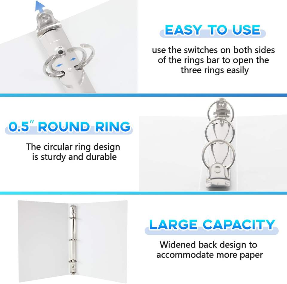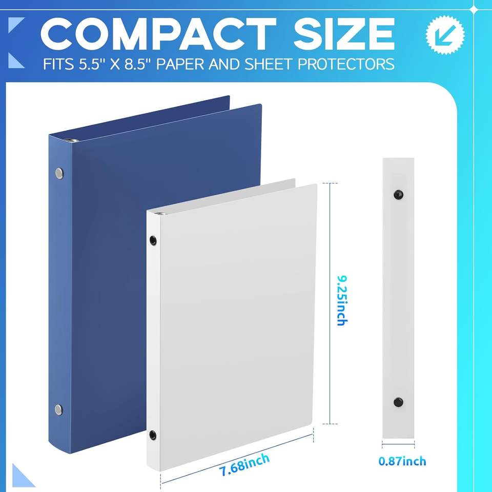 Mini Carpeta de 3 Anillos de 1/2 Pulgada, Compatible con Papel de 5.5 x 8.5, Plástico Flexible, Tres Anillos Redondos, Carpeta Pequeña Azul A5, al por Mayor para la Escuela y la Oficina