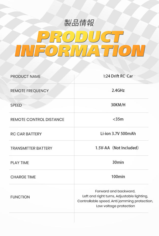 Nombre del producto:1:24 Racing modelo de coche de control remoto