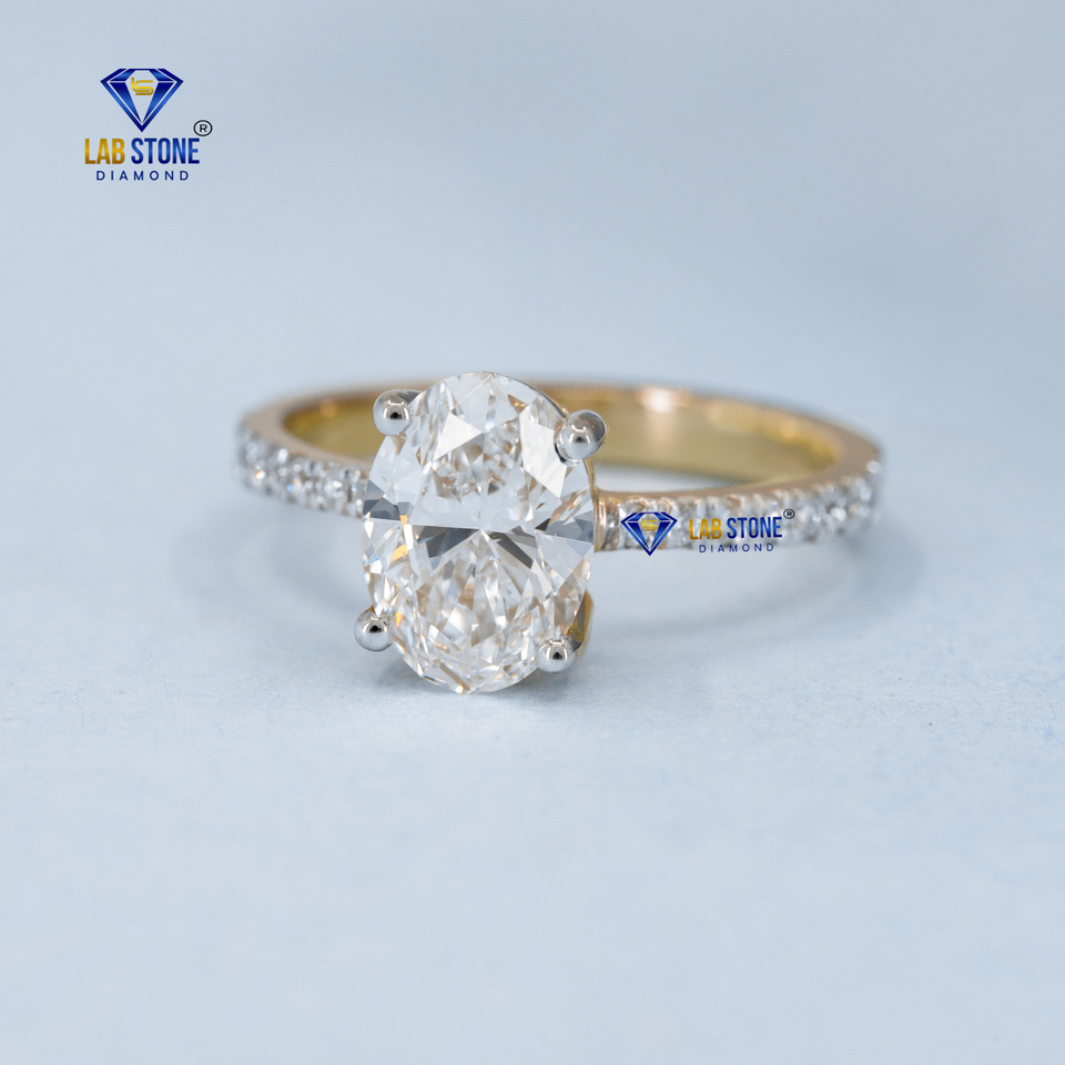 1,27 TDW Anillo de diamante de corte ovalado y redondo 18K Oro amarillo Pave Setting Hpht/Cvd Diamond Lab Stone