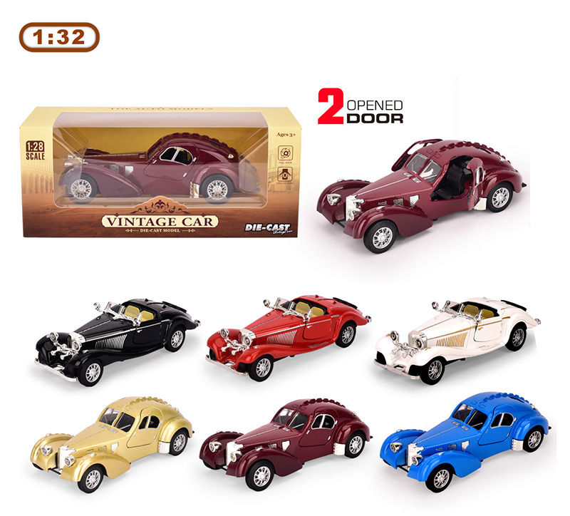 Modelo de Auto Clásico Vintage Merced-Ben & Buga a Escala 1:28, de Aleación Fundida a Presión, con Sonido y Luz, Juguete de 2 Puertas con Mecanismo de Retroceso