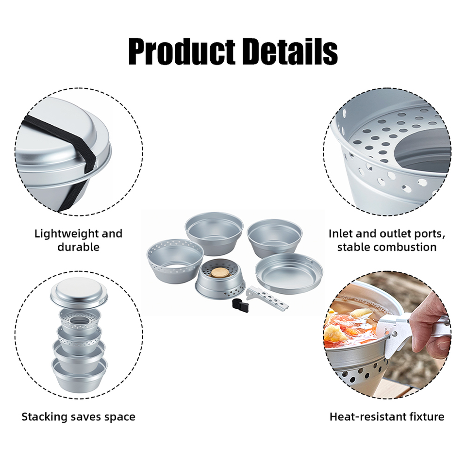 Nombre del Producto:Juego de Cocina de Camping de Aluminio de 8 Piezas