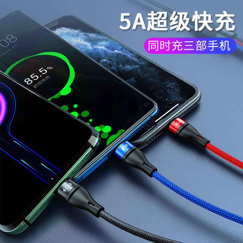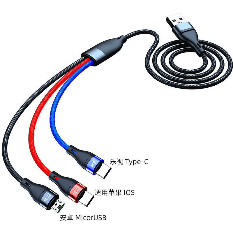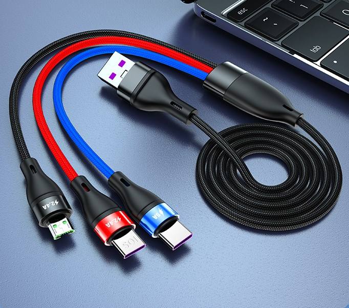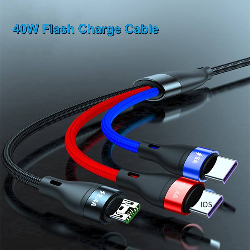 1,2 M Multi Puerto 5A USB Tipo C Android Teléfono móvil V8 Micro Multi Colorido Nylon Trenzado Carga rápida 3 en 1 Cable USB