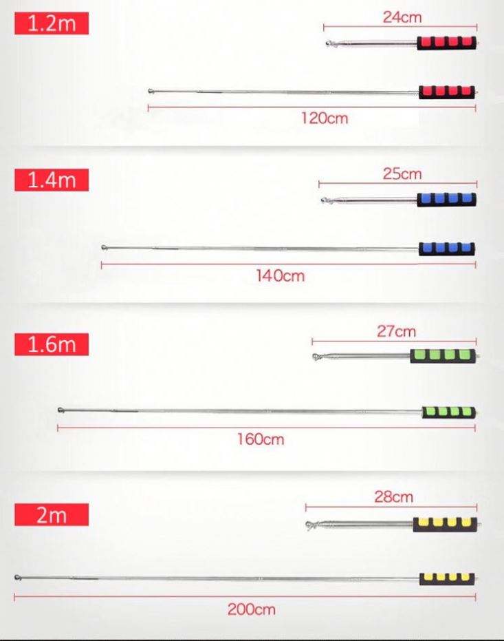Bastón Telescópico Rectangular de Acero Inoxidable de 1.2m, 1.5m, 2m, Ajustable, Duradero, Ecológico, Portátil, Multiusos, para Guías Turísticos