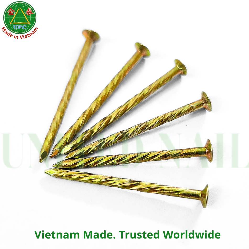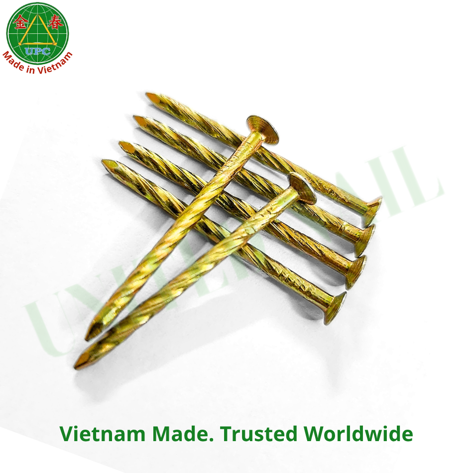 Clavos de Acero Amarillos de 1-3/8 Pulgadas con Cabeza de Tornillo, Hechos en Vietnam | Clavos sueltos con revestimiento amarillo