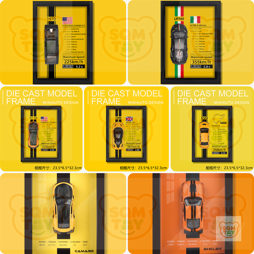 Marco de Fotos Tridimensional a Escala 1:32, Marco para Colgar Cuadros, Modelo de Coche de Aleación, Diseño Tridimensional 3D JY-00