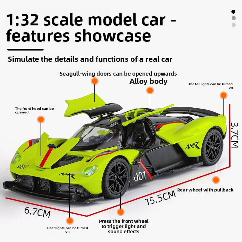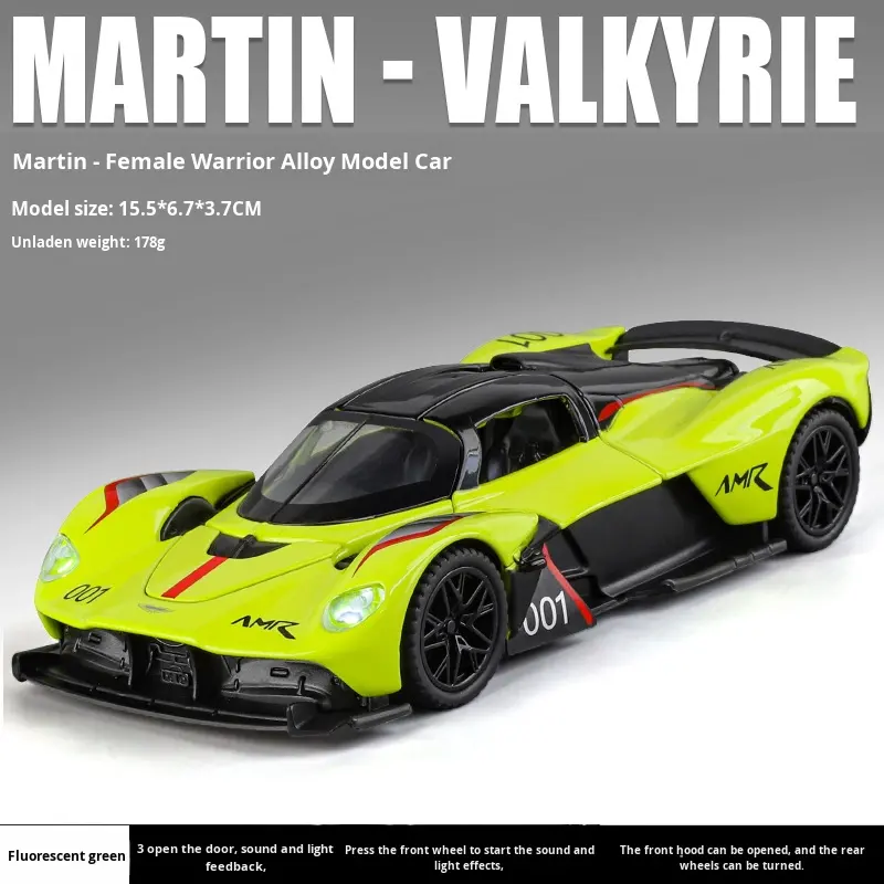 1:32 modelo de coche deportivo Martin Valkyrie Metal sonido luz Pull-Back Gaviota ala puerta simulación juguete para niños