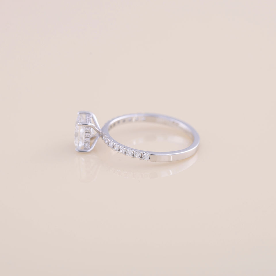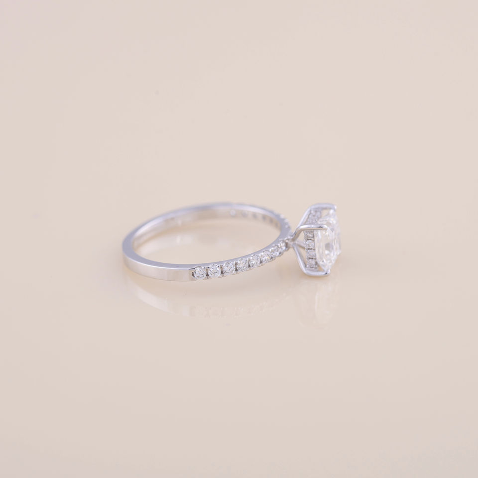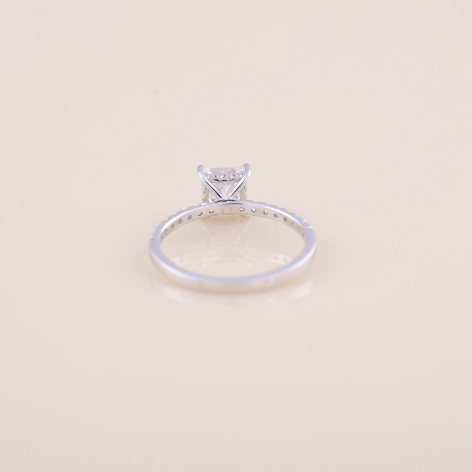 Anillo de Compromiso con Diamante Cultivado en Laboratorio de Corte Princesa de 1.35CT, Engaste de 4 Puntas, Banda Pavé, Chapado en Rodio, Plata de Ley 925