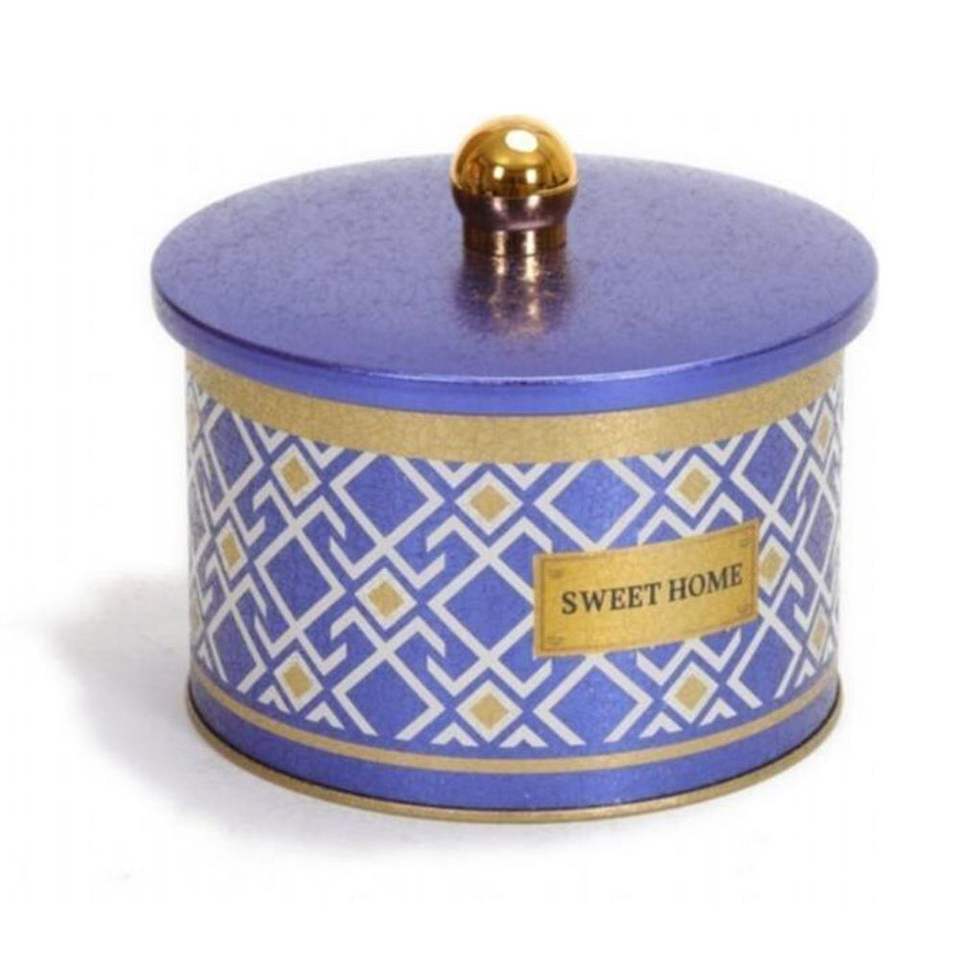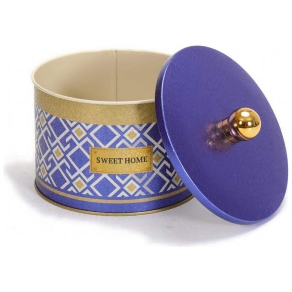 Diseño de patrón sin costuras de 1.3L, Líneas geométricas, perilla de fondo azul, mango de 140mm, contenedor y almacenamiento de alimentos redondo de Metal