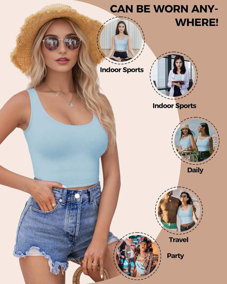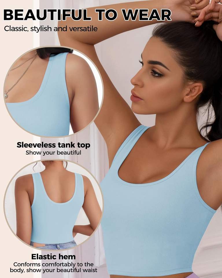 Tops cortos sin mangas con cuello en U para mujer, Camisetas básicas recortadas con espalda cruzada, camisetas deportivas cortas para salir