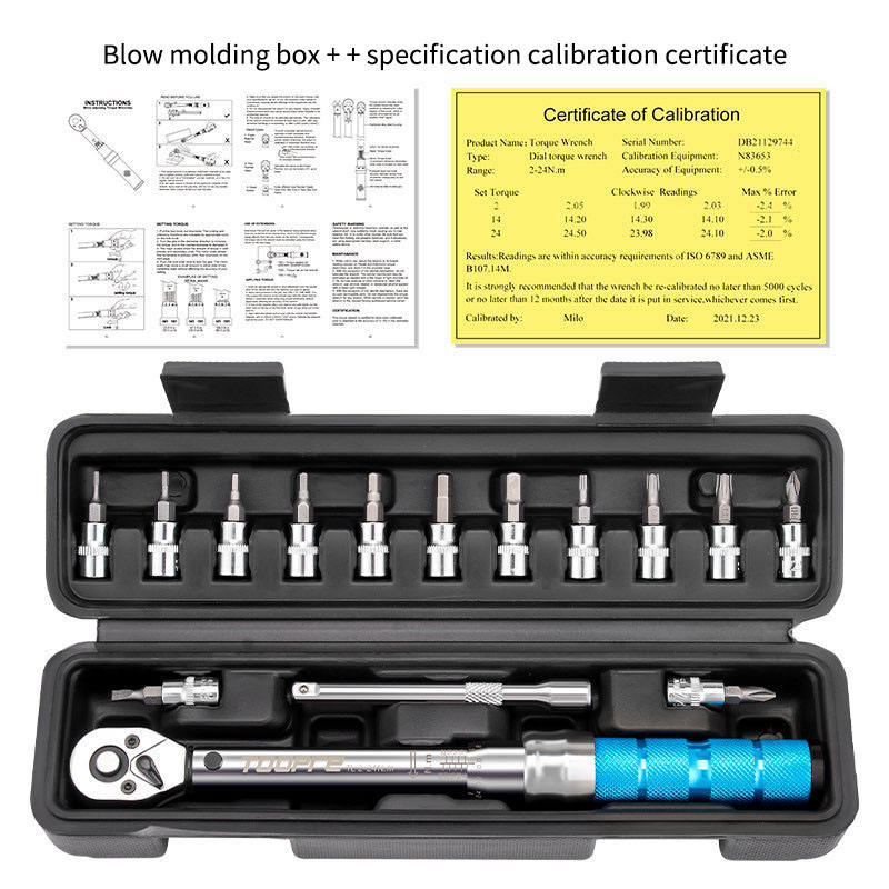 Juego de Llaves Dinamométricas para Bicicleta de Acero Inoxidable de 1/4 de Pulgada, de 2 a 14 Nm, Kit de Herramientas de Reparación de Bicicletas Negras para Bicicletas de Montaña MTB