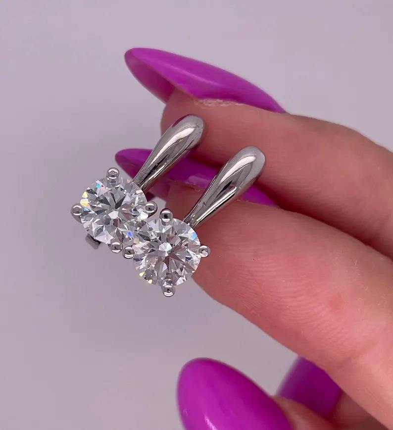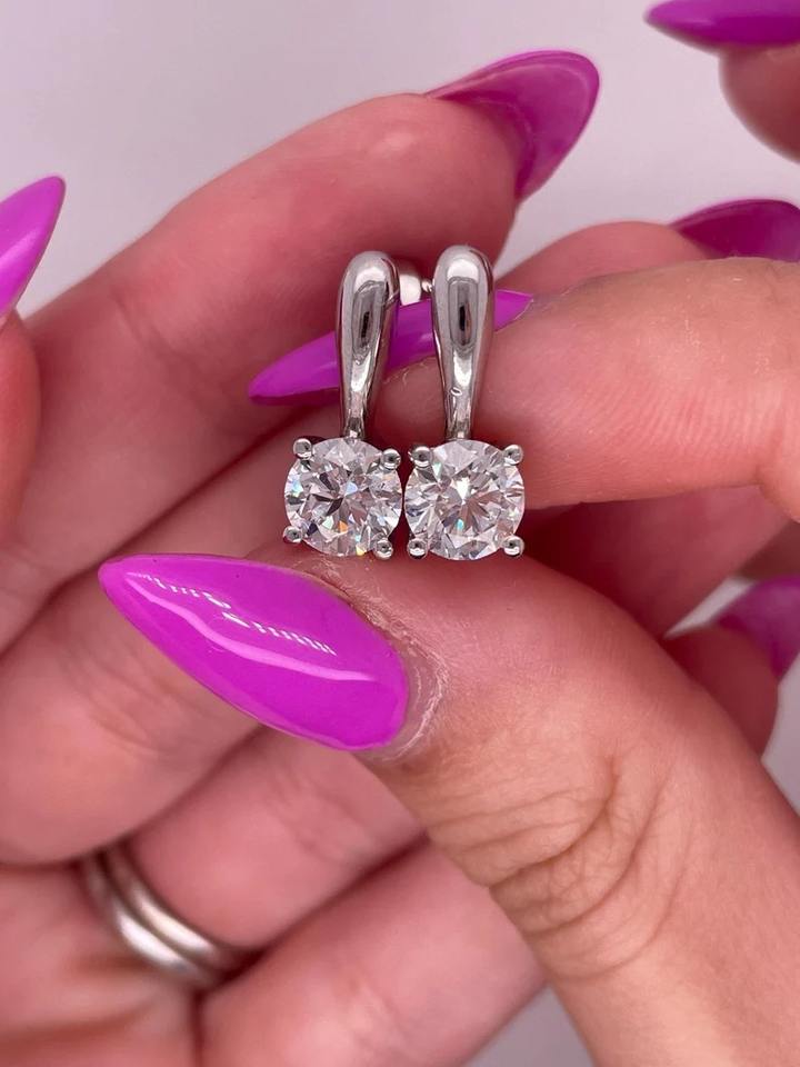 Pendientes de Diamante Cultivado en Laboratorio de Corte Redondo de 1.40 Quilates, Oro de 14k, Solitario D/VVS