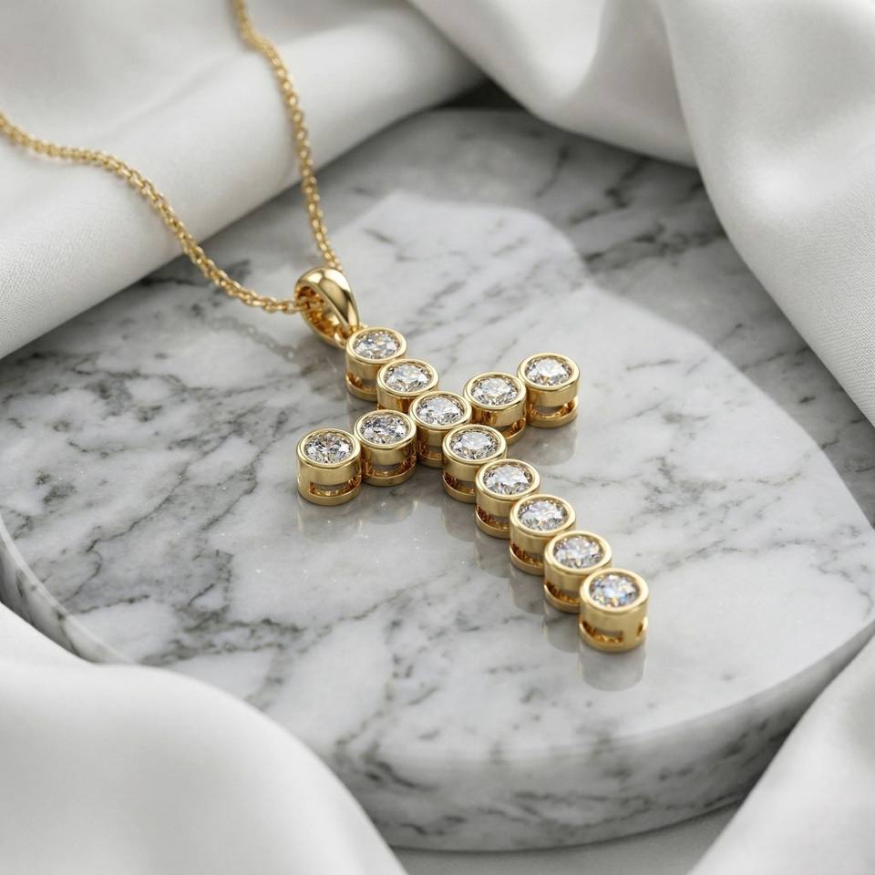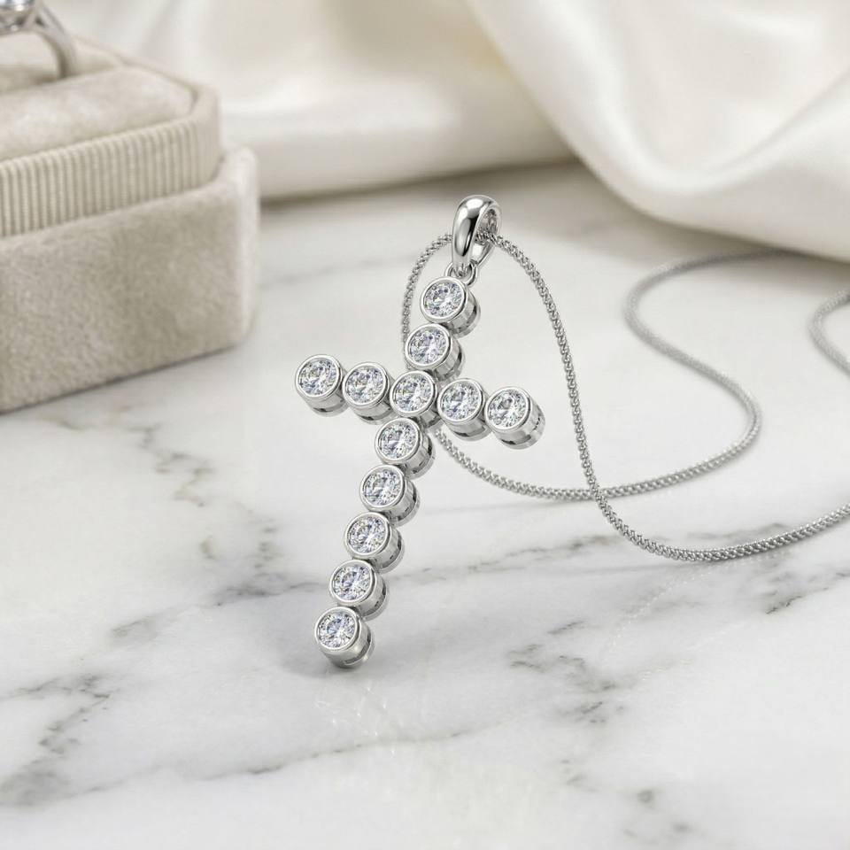 Collar con Colgante de Cruz con Diamantes Redondos de 1.40CTW con Engaste de Bisel para Mujer