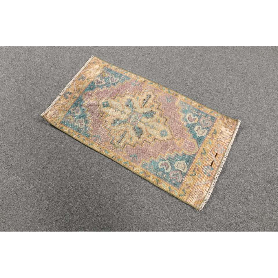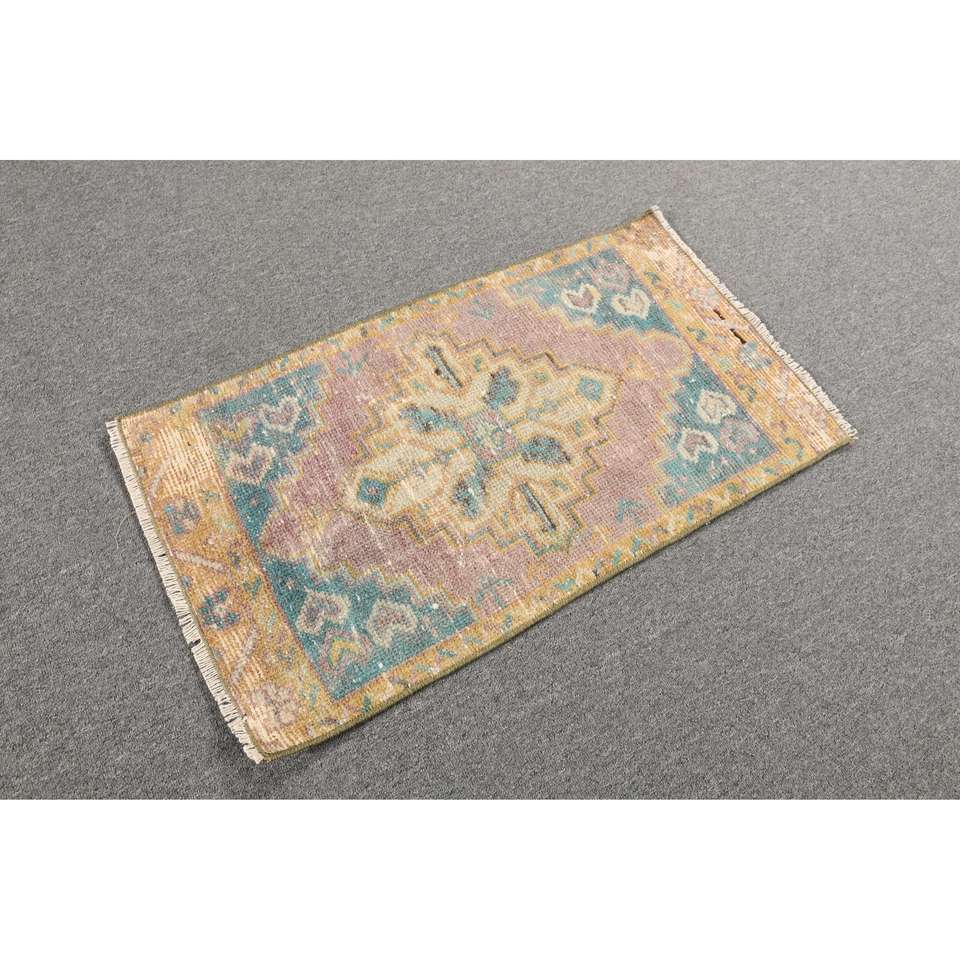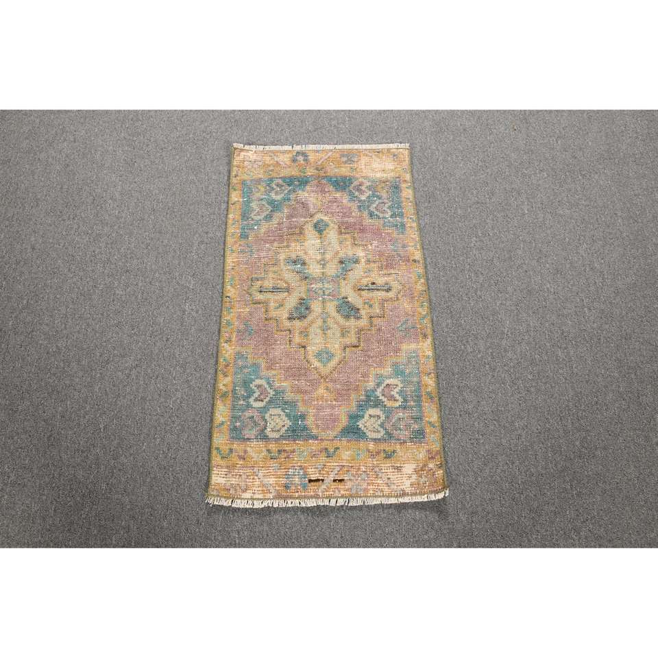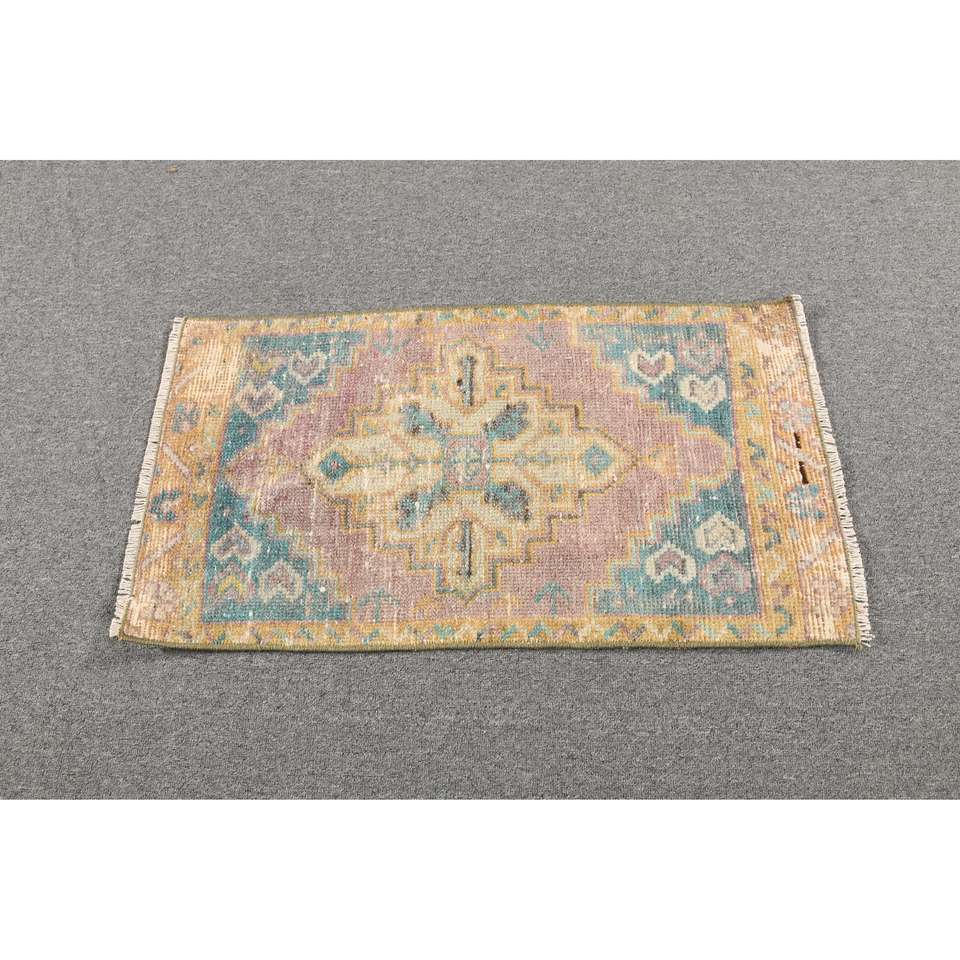 Alfombra de 1.4x2.6 pies, Alfombra Turca Vintage, Alfombra de Lana a Cuadros Azul y Marrón