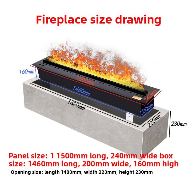 Chimenea de Vapor Atomizada 3D Personalizada de 1.5, Núcleo de Chimenea Integrado, Decoración con Simulación de Llama, Inteligente para Sala de Estar de Villa