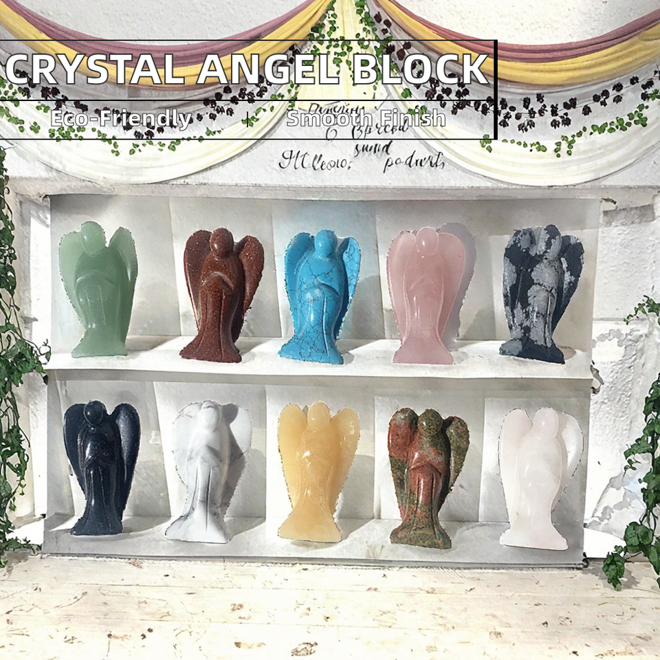 Tallas de Ángel de cuarzo rosa de cristal Natural de 1,5 pulgadas, bloque pulido, piedras preciosas curativas ecológicas para decoración y regalo de bodas