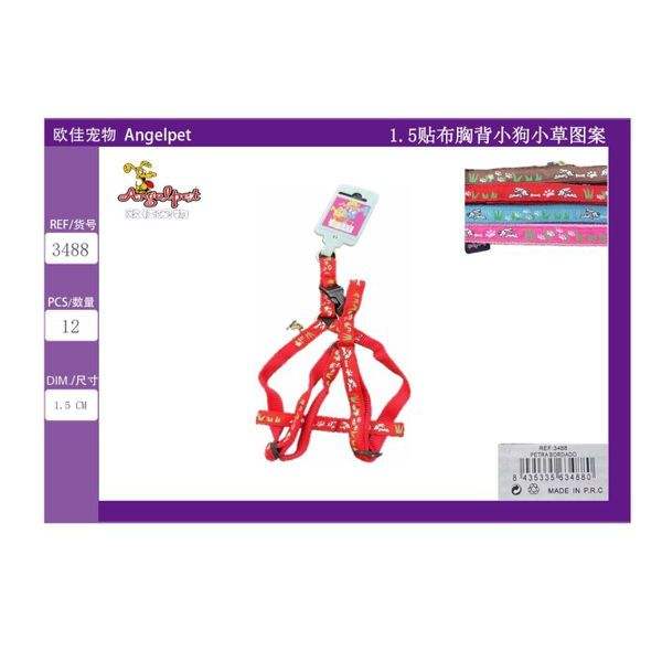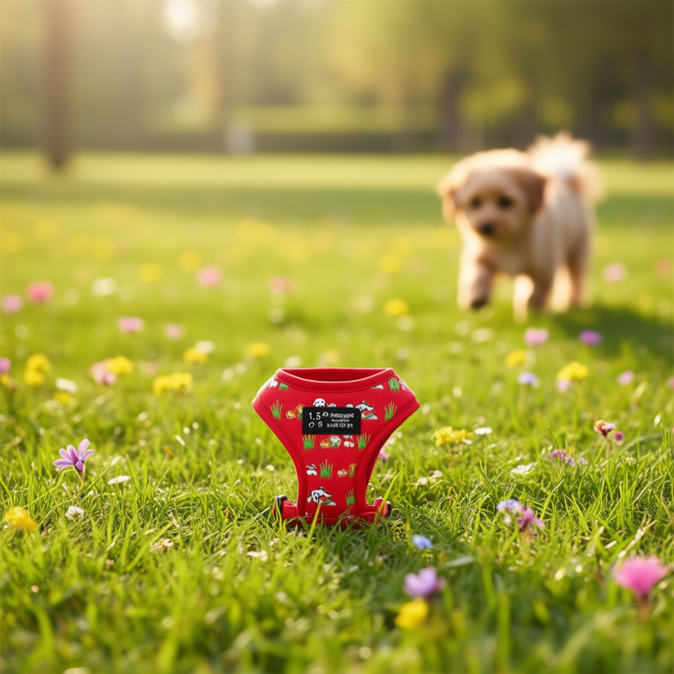 1.5-Inch Patchwork Pet Harness with Adorable Puppy and Grass Pattern Comfortable Chest and Back Design