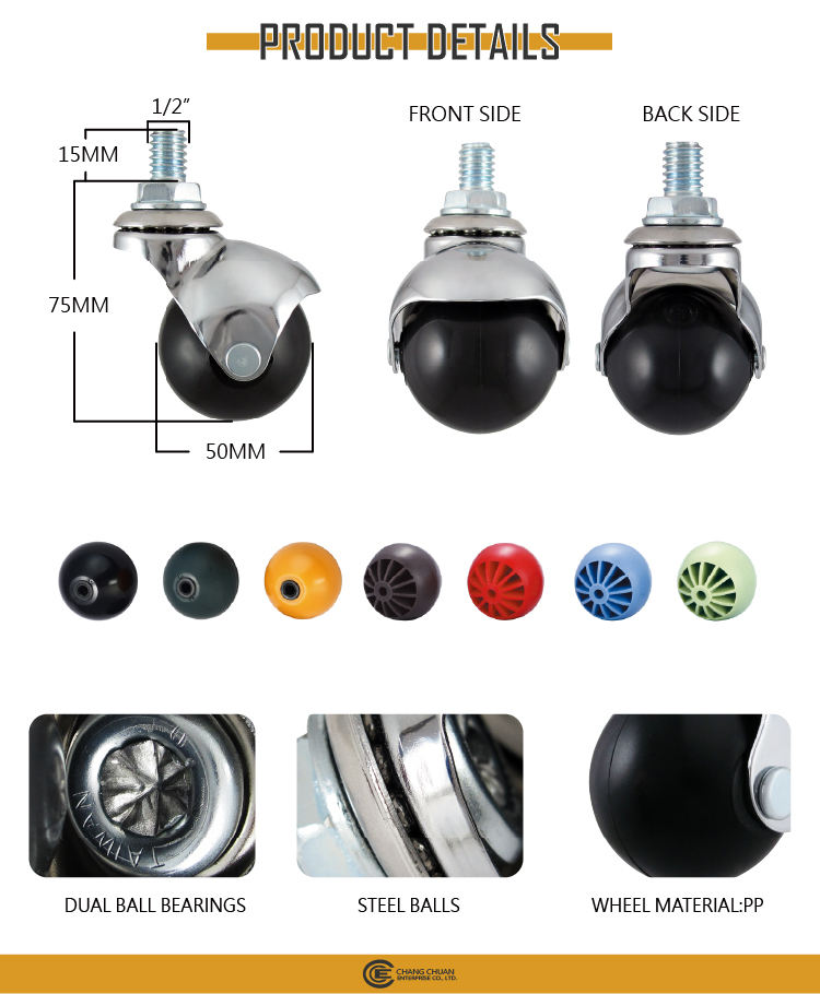 Nombre del producto:1/4 pulgada de vástago roscado cromado recubierto 1,5 pulgadas rodillo de bolas