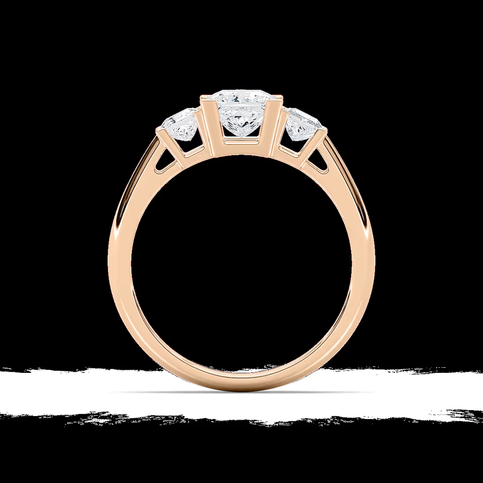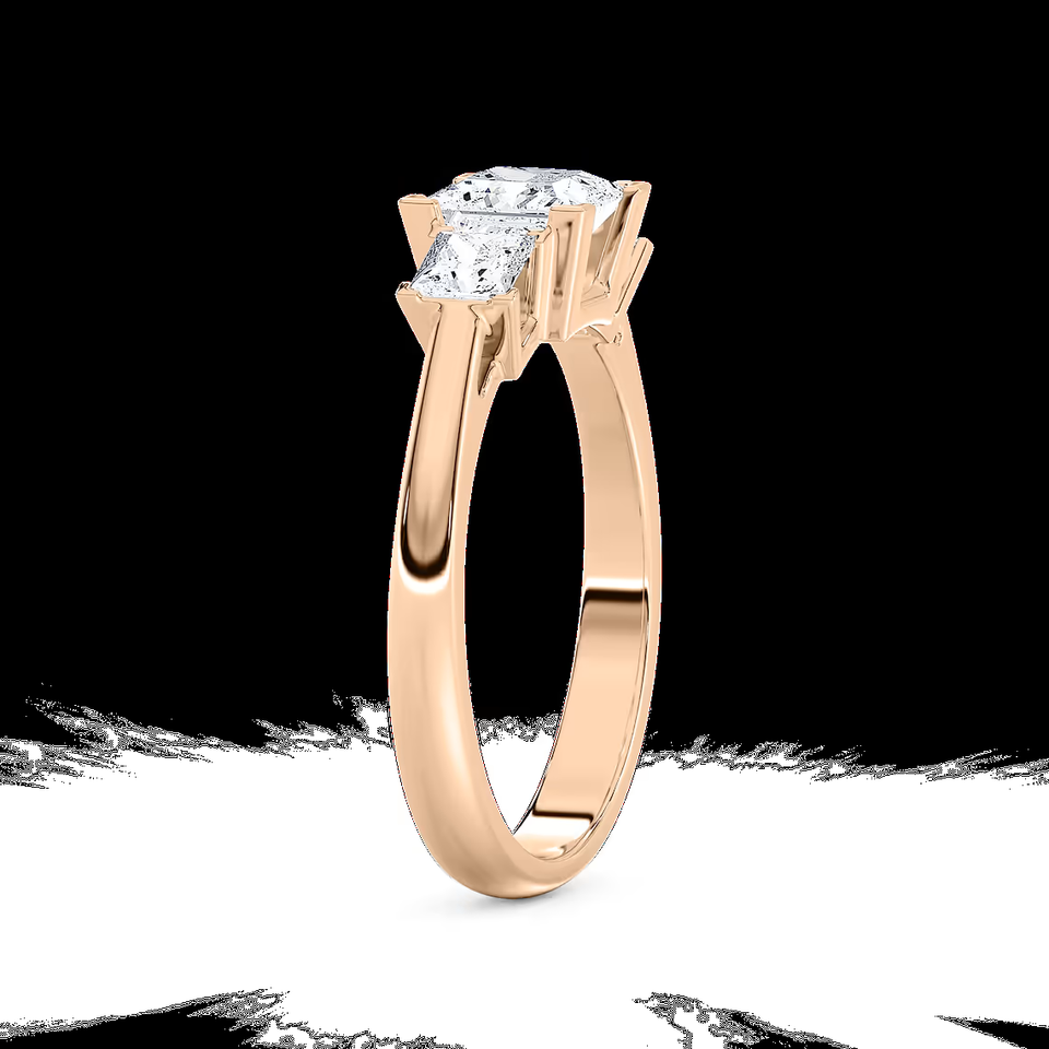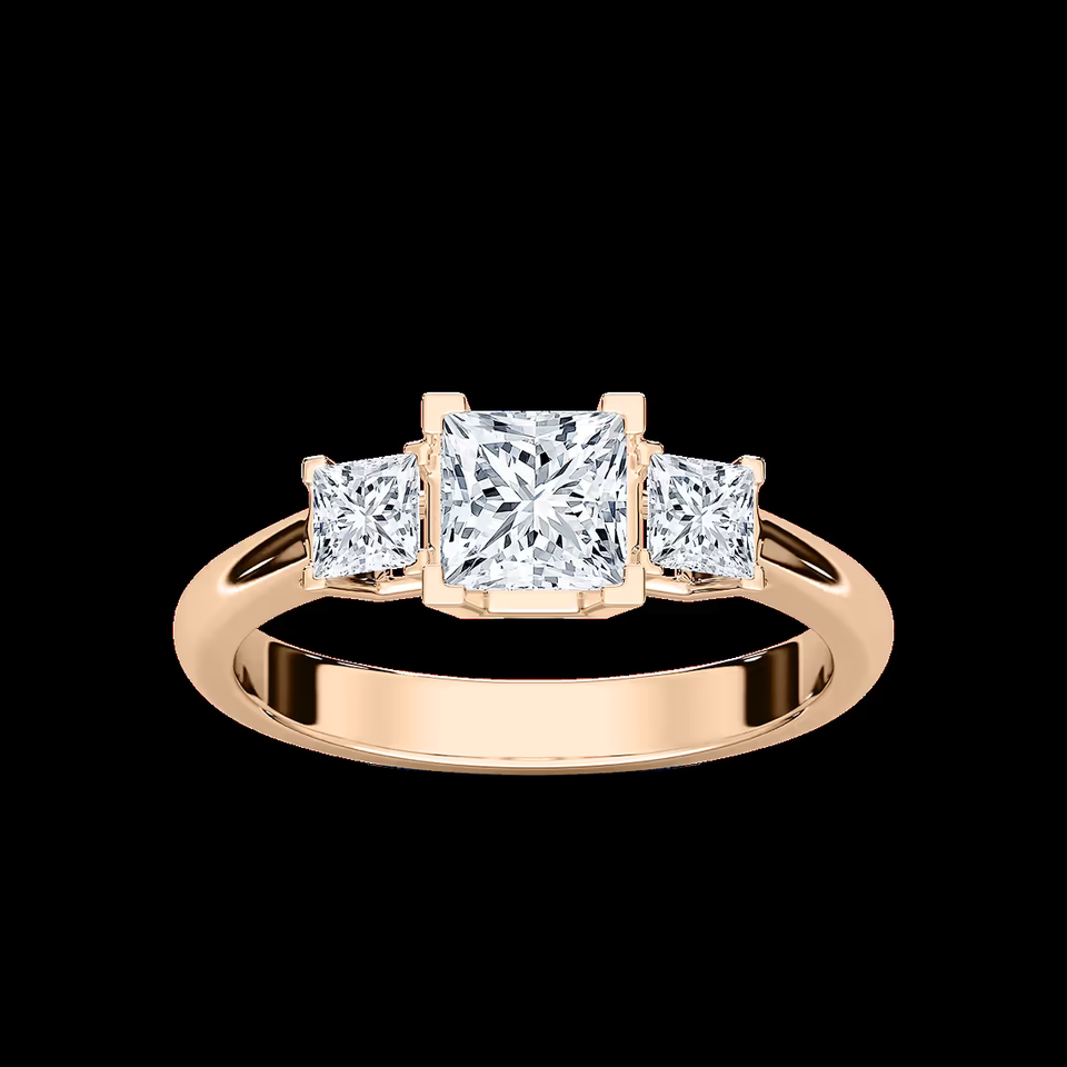 Anillo de Compromiso de Tres Piedras con Diamante Cultivado en Laboratorio de Corte Princesa de 1.50 CTW, Certificado IGI, Oro Sólido de 14K