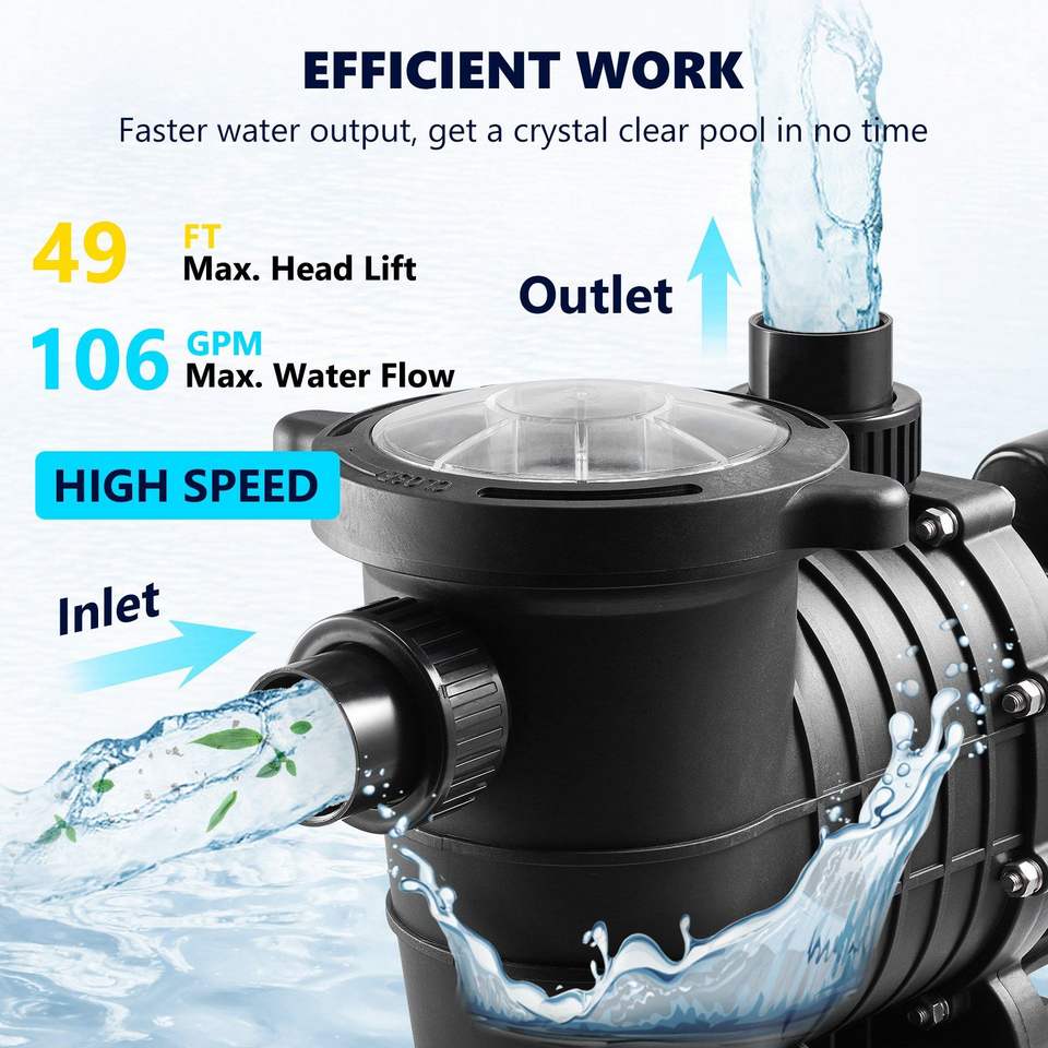 Bomba de Piscina de 1.5HP 230V de Doble Velocidad con Filtro de Cesta Potente de 1100W para Piscinas Enterradas 5400 GP