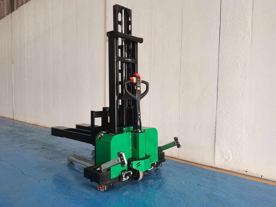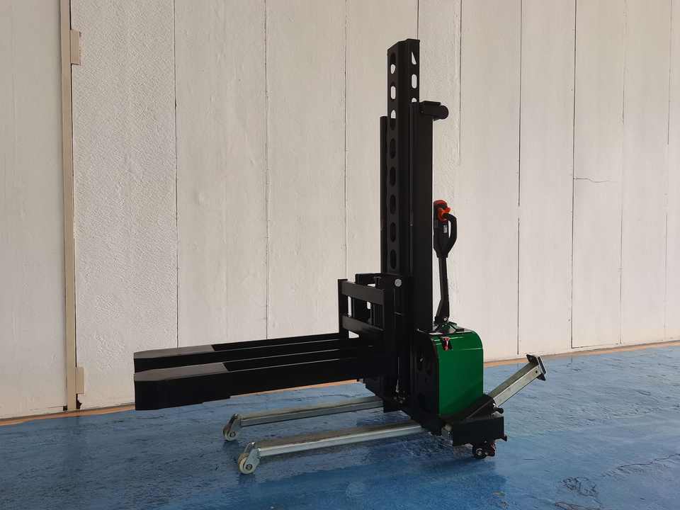 Apilador Eléctrico Autocargable de 1.5 Toneladas con Patas Extensibles para Terrenos Difíciles y Uso en Restaurantes