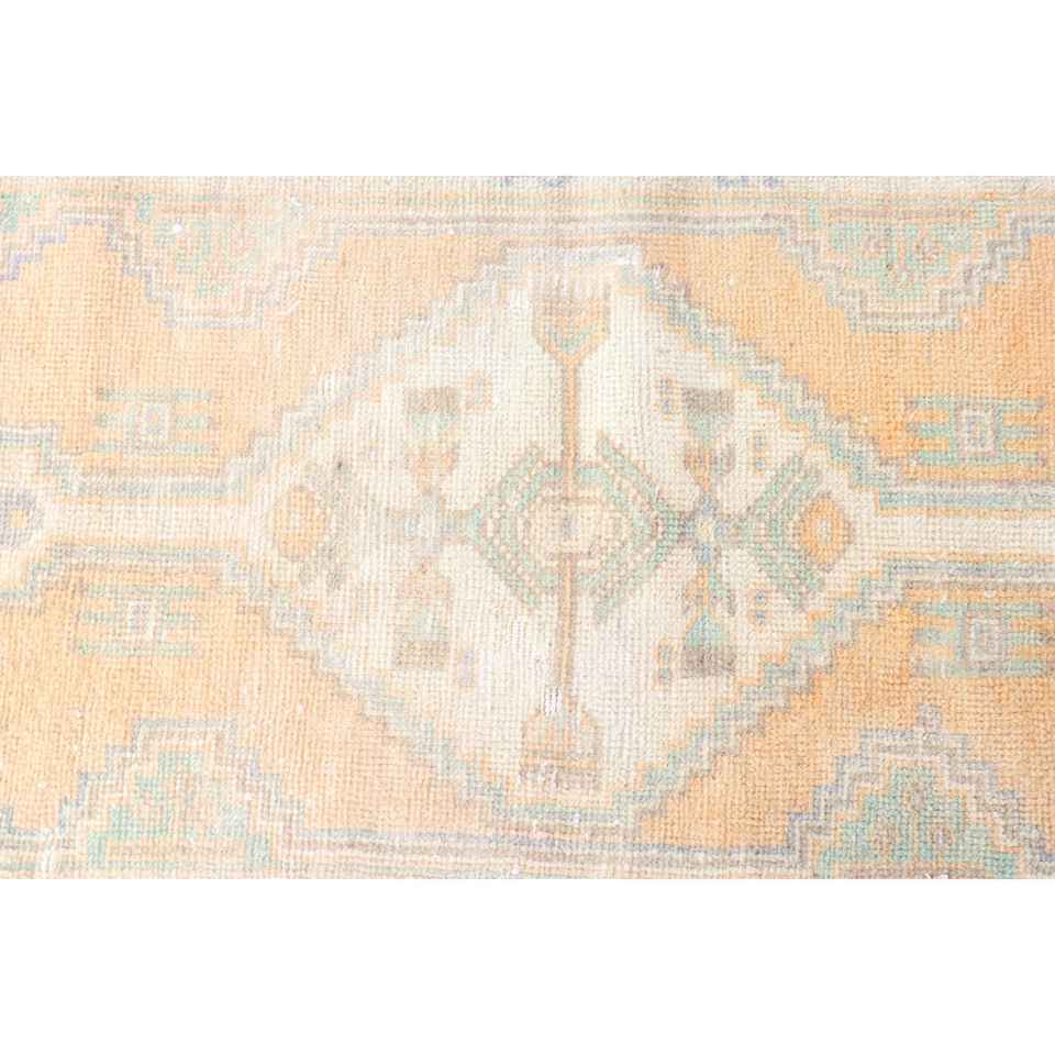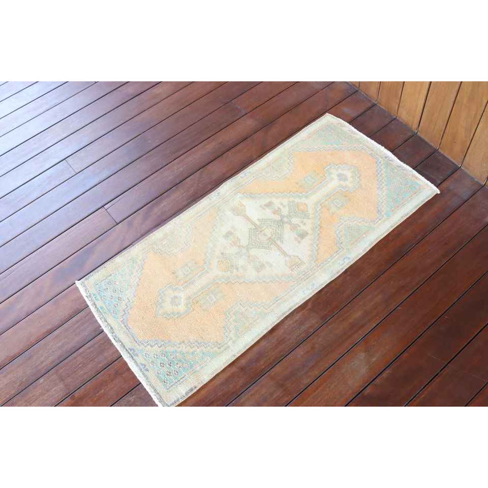 Alfombra Turca de Lana de 15x3.2 pies, Diseño de Plantas y Árboles Azules en Patchwork, Respaldo de Látex Ecológico, Estilo Tradicional