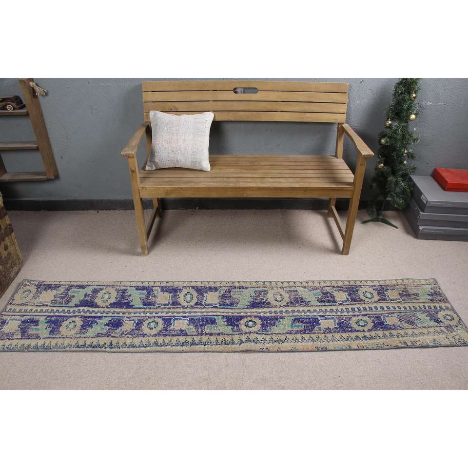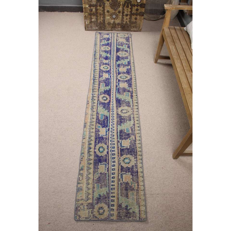 Alfombra de 1.5x7.5 pies, Alfombra Turca Vintage, Alfombra Azul Verde Estilo Suroeste