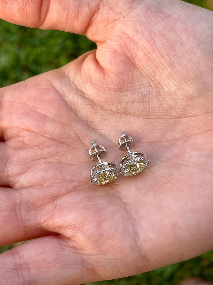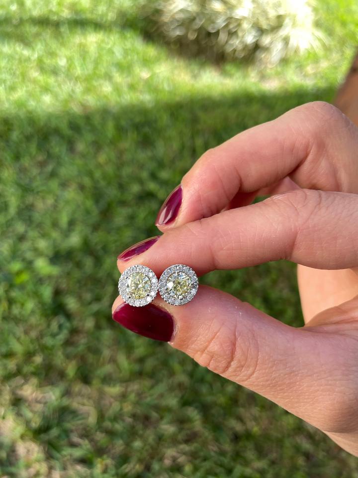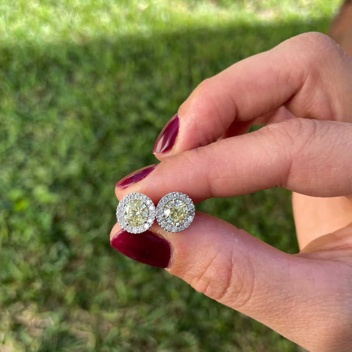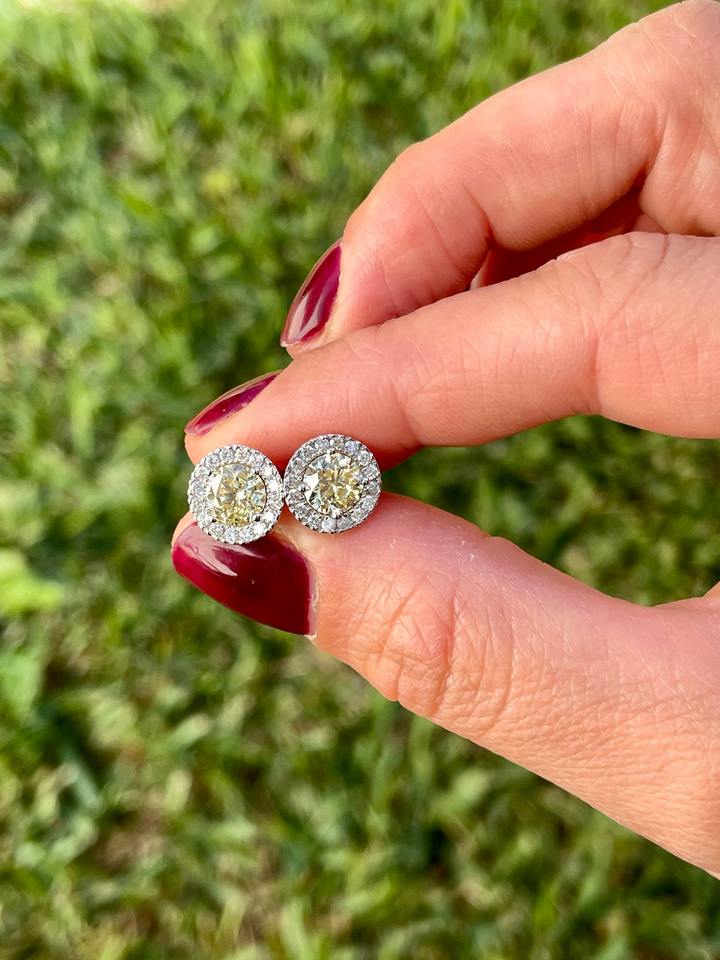 Pendientes de Diamante Amarillo de Laboratorio de 1.60ct con Halo, Oro Blanco de 14K, Certificado IGI, Joyería para Regalo de Boda o Fiesta