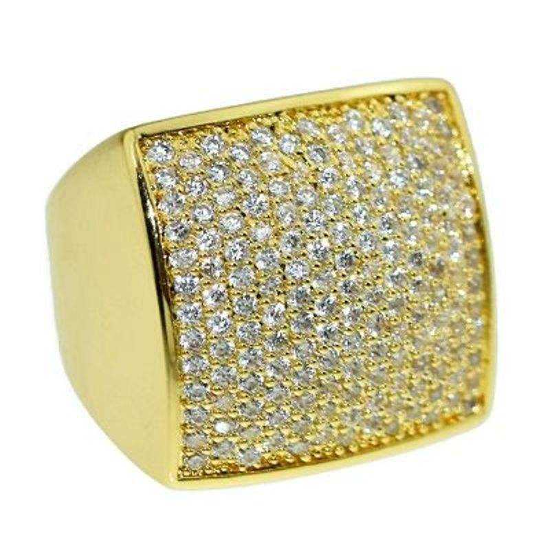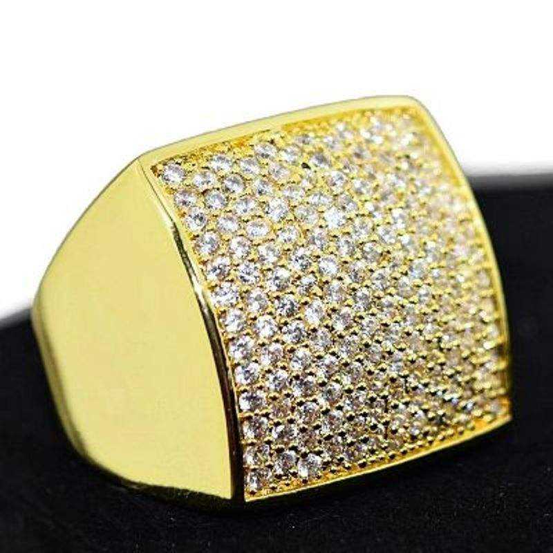 Anillo de Moda Grande para Hombre, Chapado en Oro Amarillo de 14k con Diamante Cultivado en Laboratorio de 1.63 Quilates