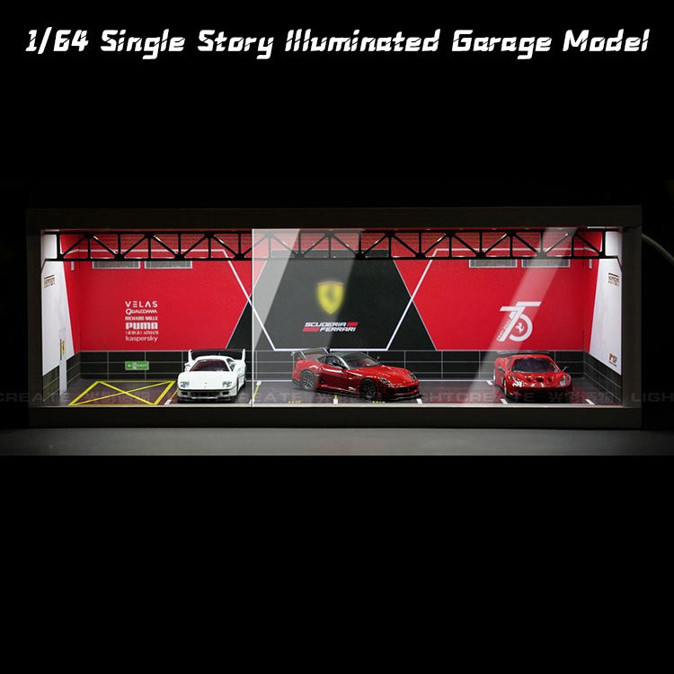Vitrina de Exhibición para Garaje a Escala 1/64, Monocapa Transparente con LED, Caja de Almacenamiento para Estantería, Modelos de Coches, Coleccionables de Estudio