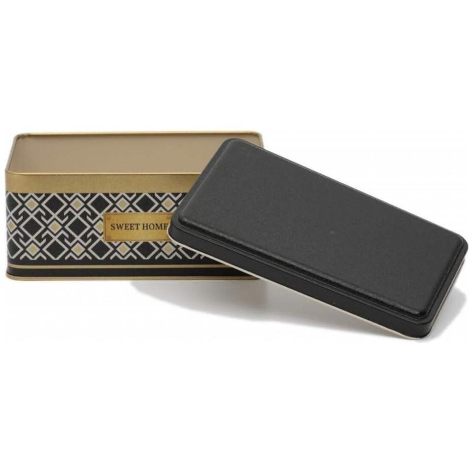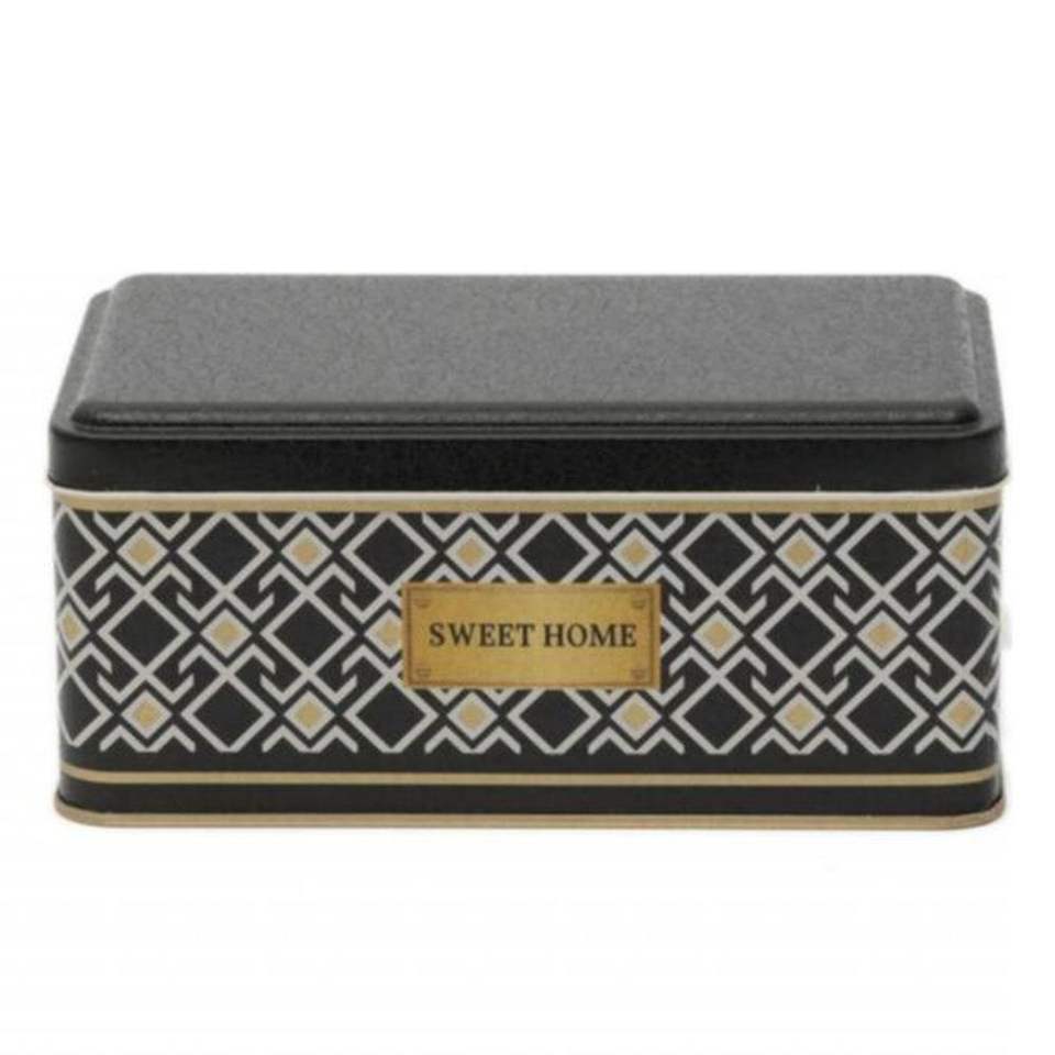 Kontensan EF05588 Caja de Almacenamiento Rectangular de Metal de 1.6L con Diseño de Patrón Sin Costuras, Líneas Geométricas, Fondo Negro, 115x190x80 mm