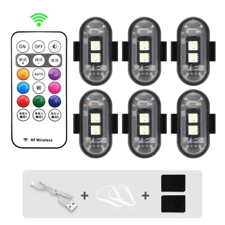 1-6 Luces LED Inalámbricas para Drones, Luces Estroboscópicas para Motocicletas, Coches y Bicicletas, Luz de Advertencia con Control Remoto, Luz Indicadora, Carga USB, 8 Colores