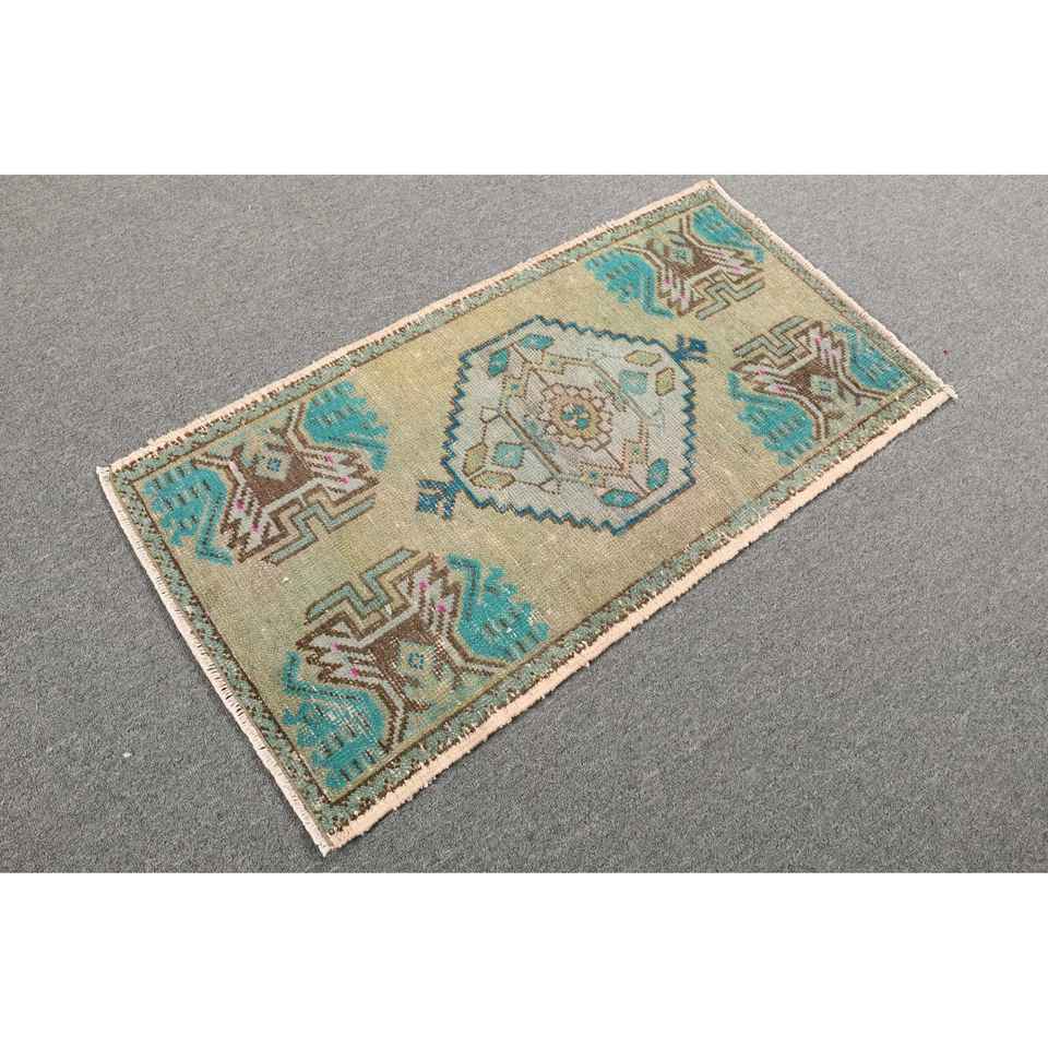 Alfombra Vintage de 1.6x3.1 pies, Alfombra Turca Pequeña, Alfombra Oriental Azul de Lana