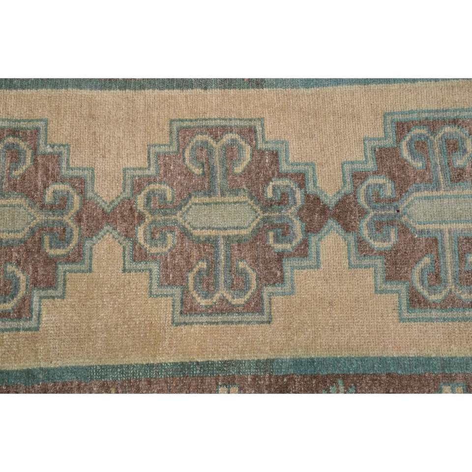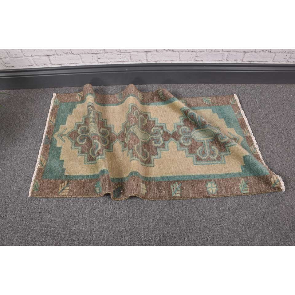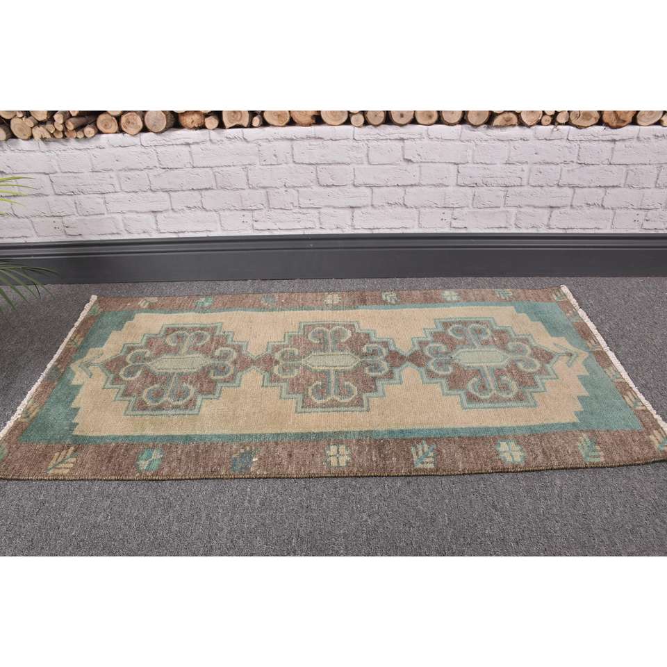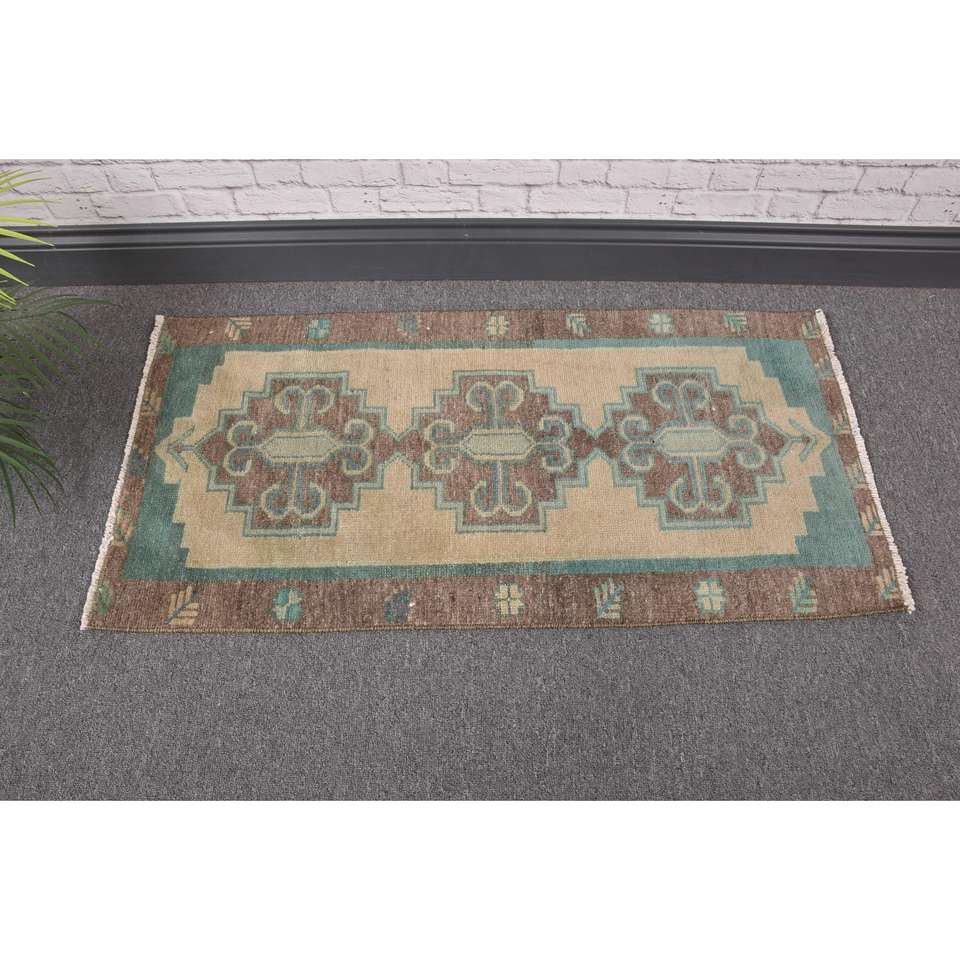 Alfombra Turca de 1.6x3.2 pies, Alfombra Pequeña Vintage, Alfombra Sólida Marrón Azul