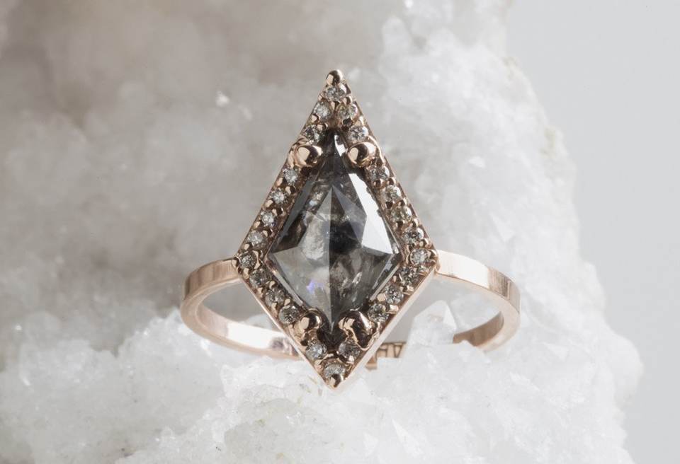 Nombre del producto:Cometa natural en forma de sal y pimienta diamante halo anillo de compromiso
