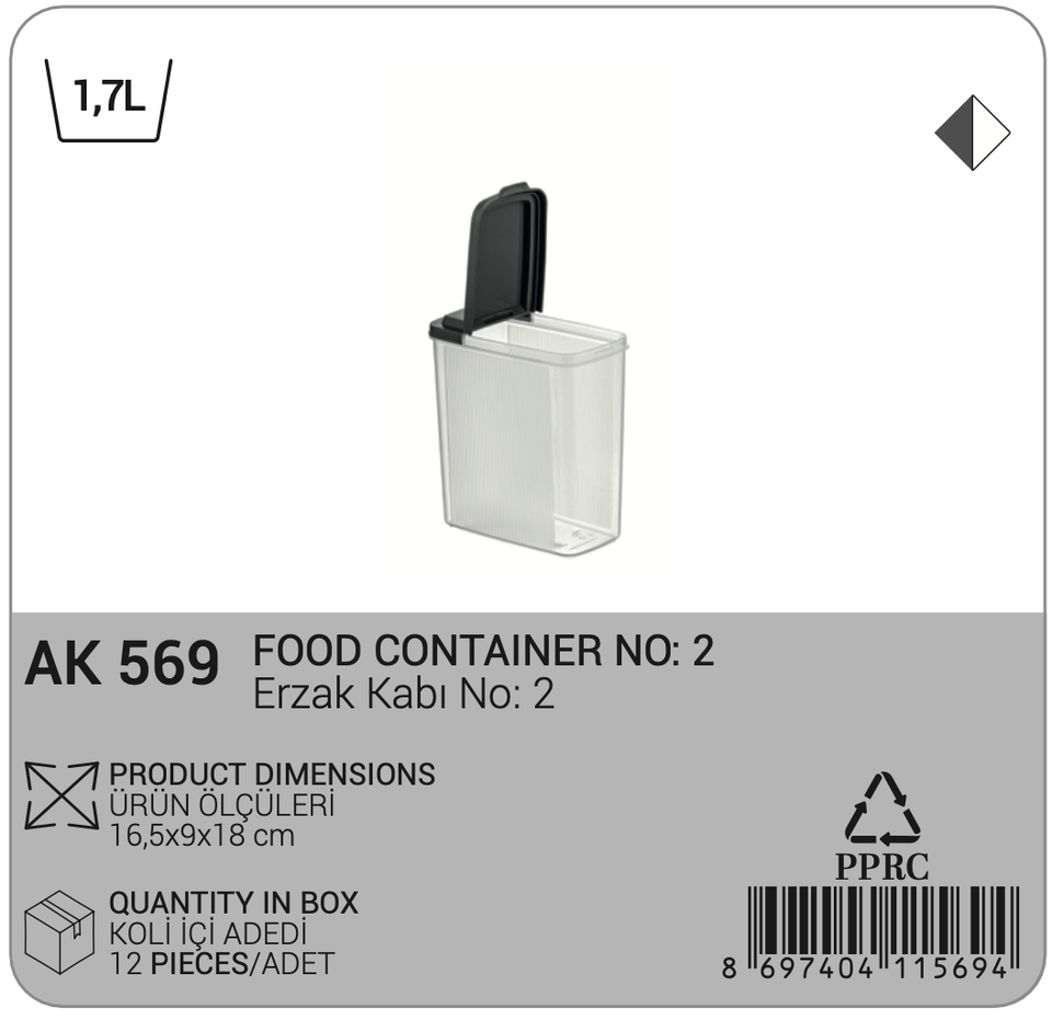 Recipiente de almacenamiento de alimentos de 1,7 L con tapa negra para organización de despensa Plástico Ideal para granos Pasta y cereales Sello hermético