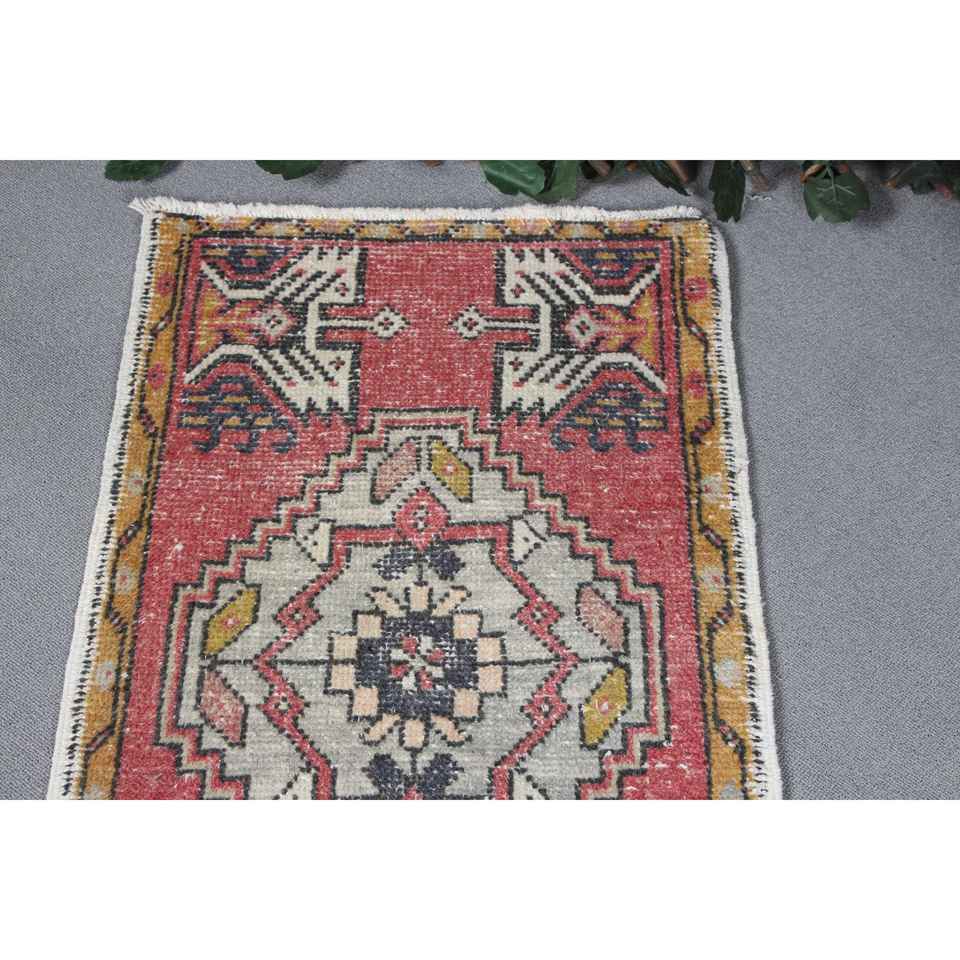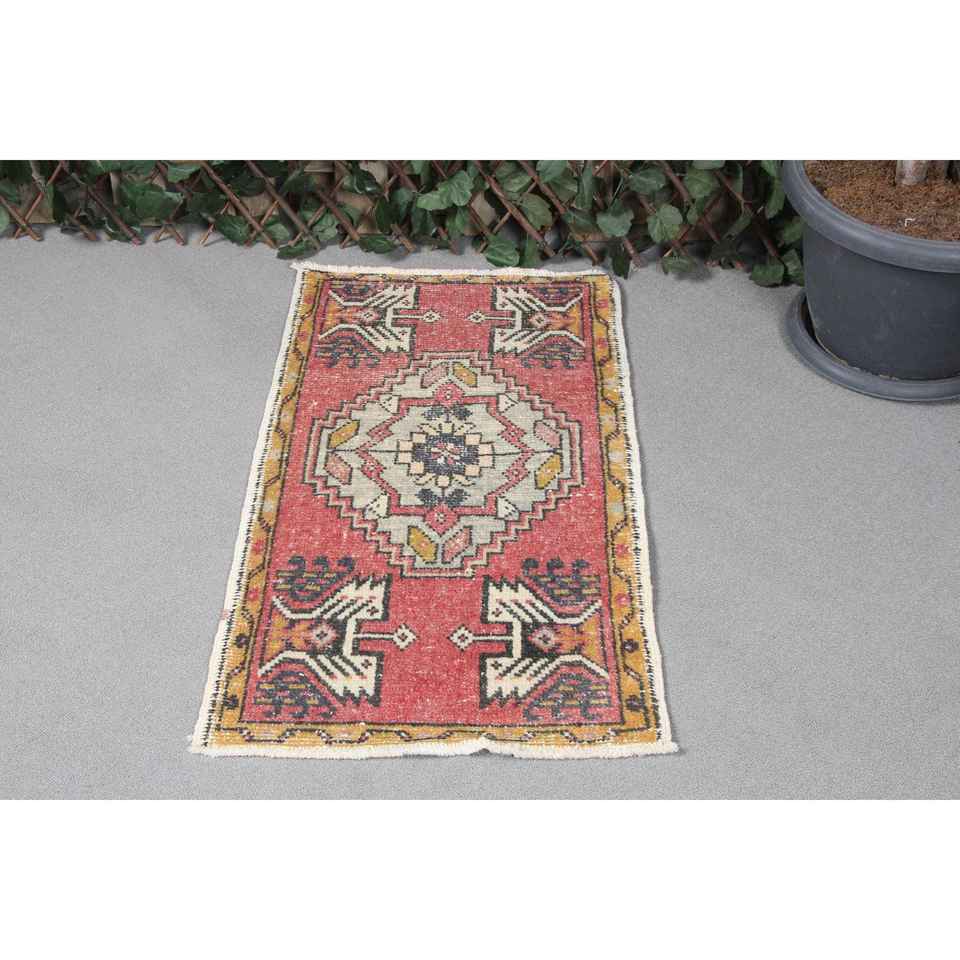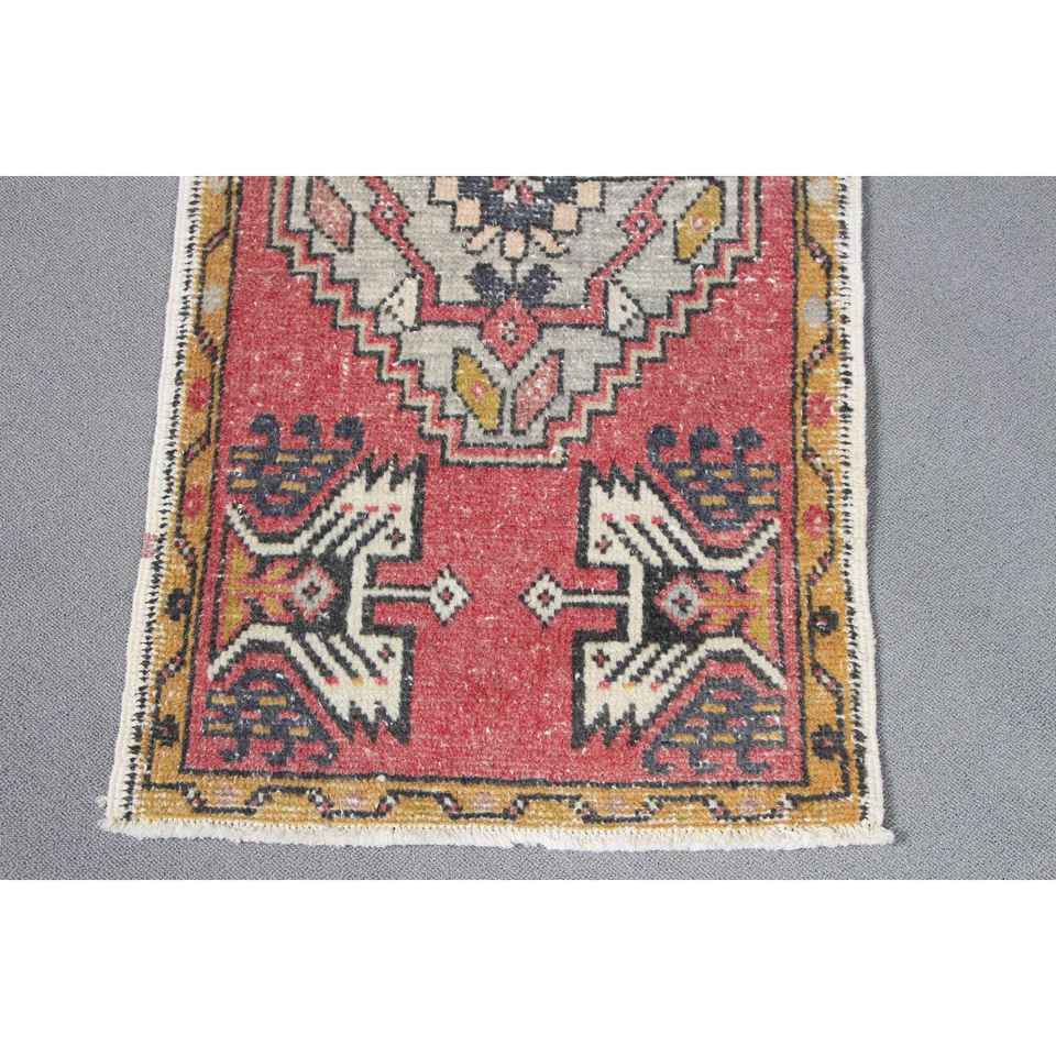 Alfombra de 1.7x3.2 pies, alfombra turca vintage, alfombra con motivos de plantas y árboles en rojo y azul