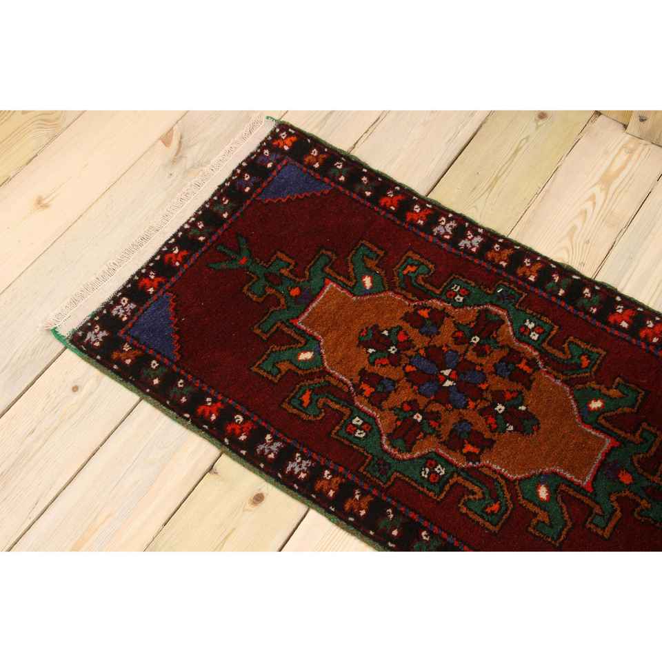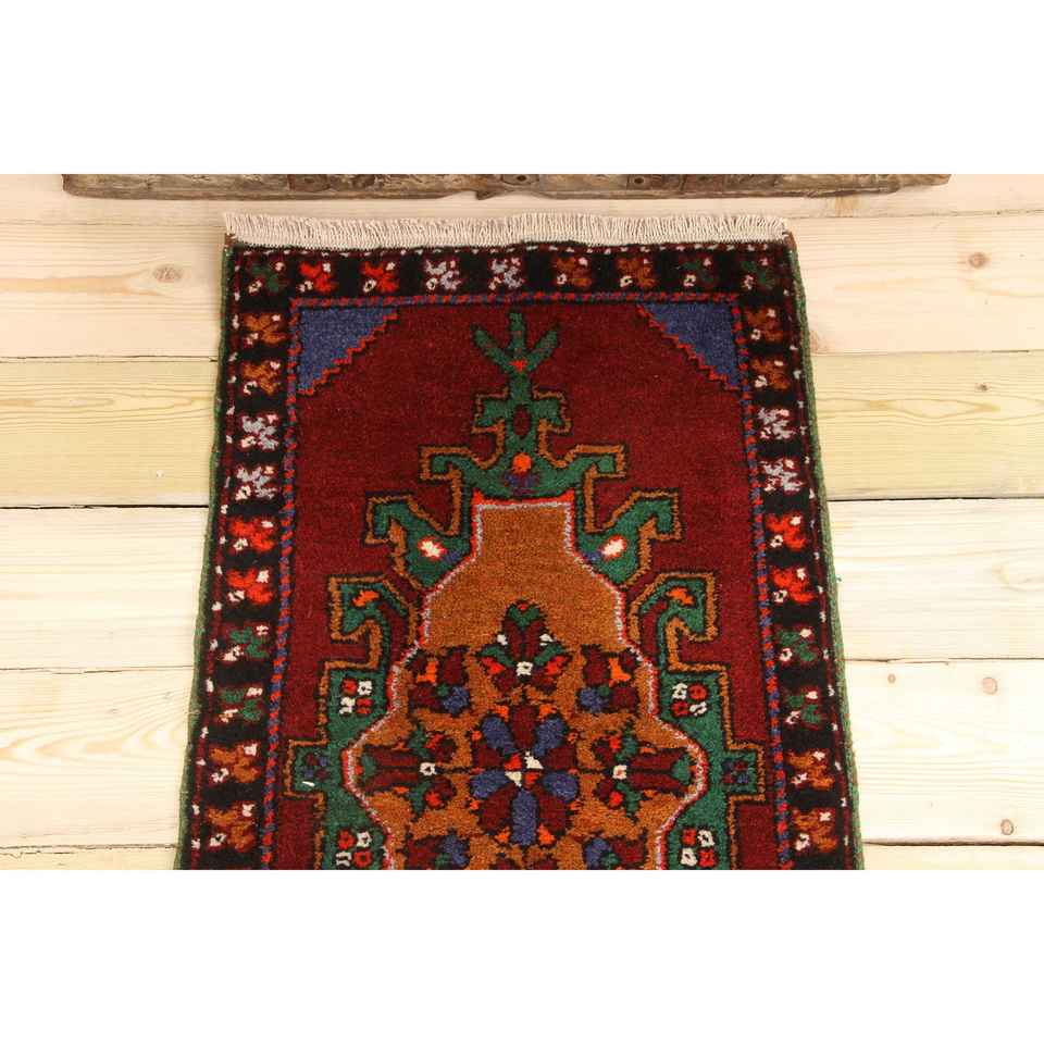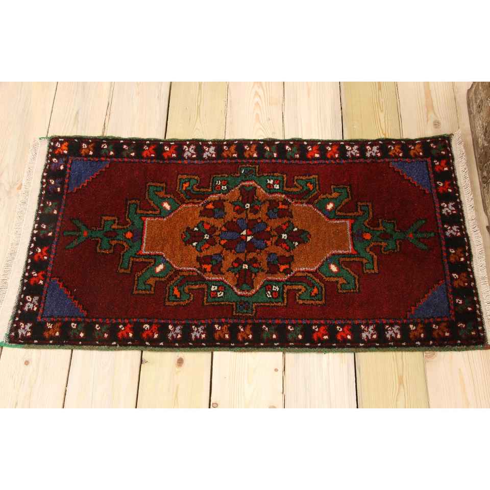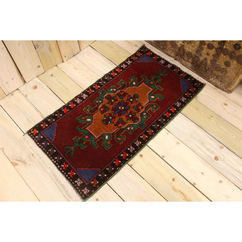 Alfombra Turca de 1.7x3.2 pies, Alfombra, Alfombra a Cuadros Roja de Lana