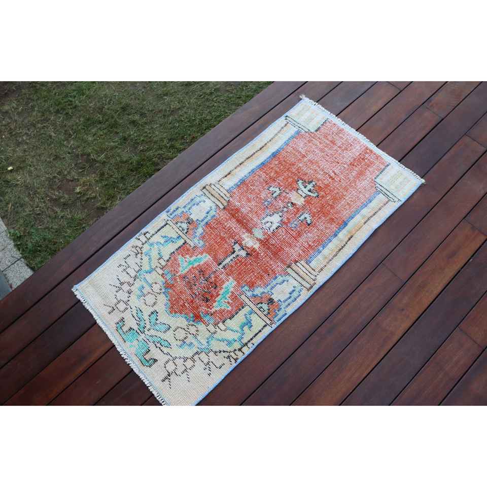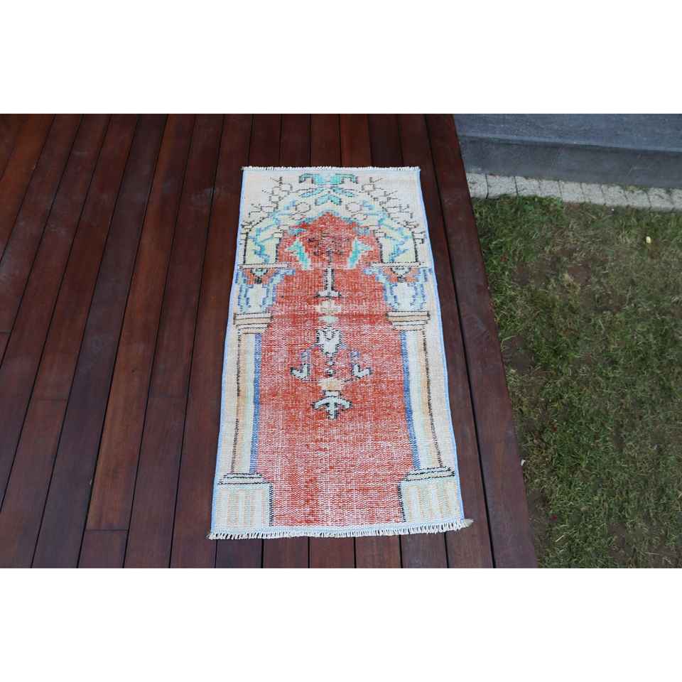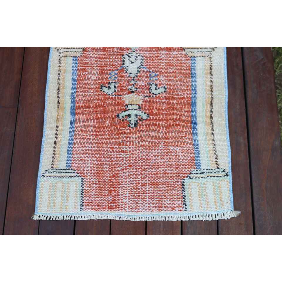 Alfombra Turca de 1.7x3.4 pies, Alfombra Vintage, Alfombra Roja de Lana Sólida