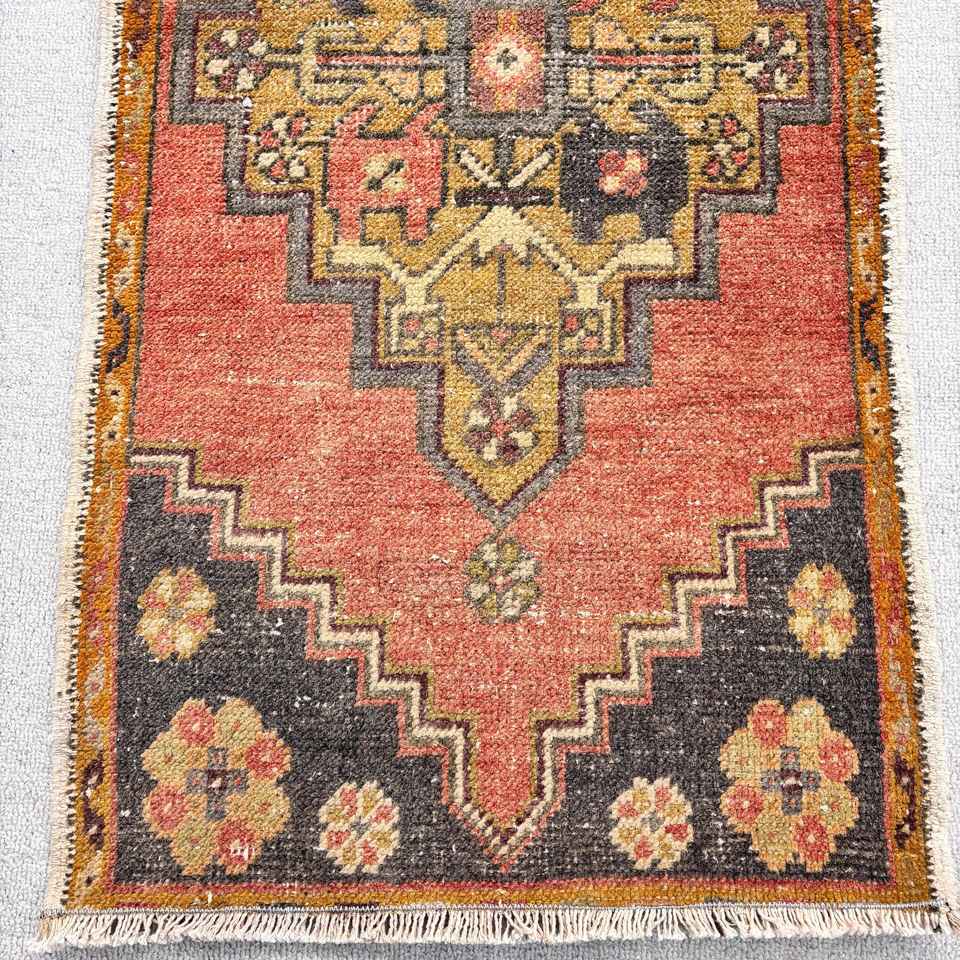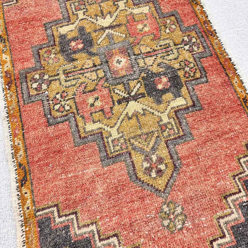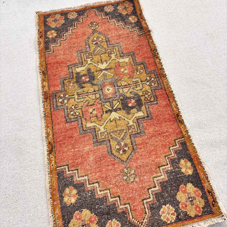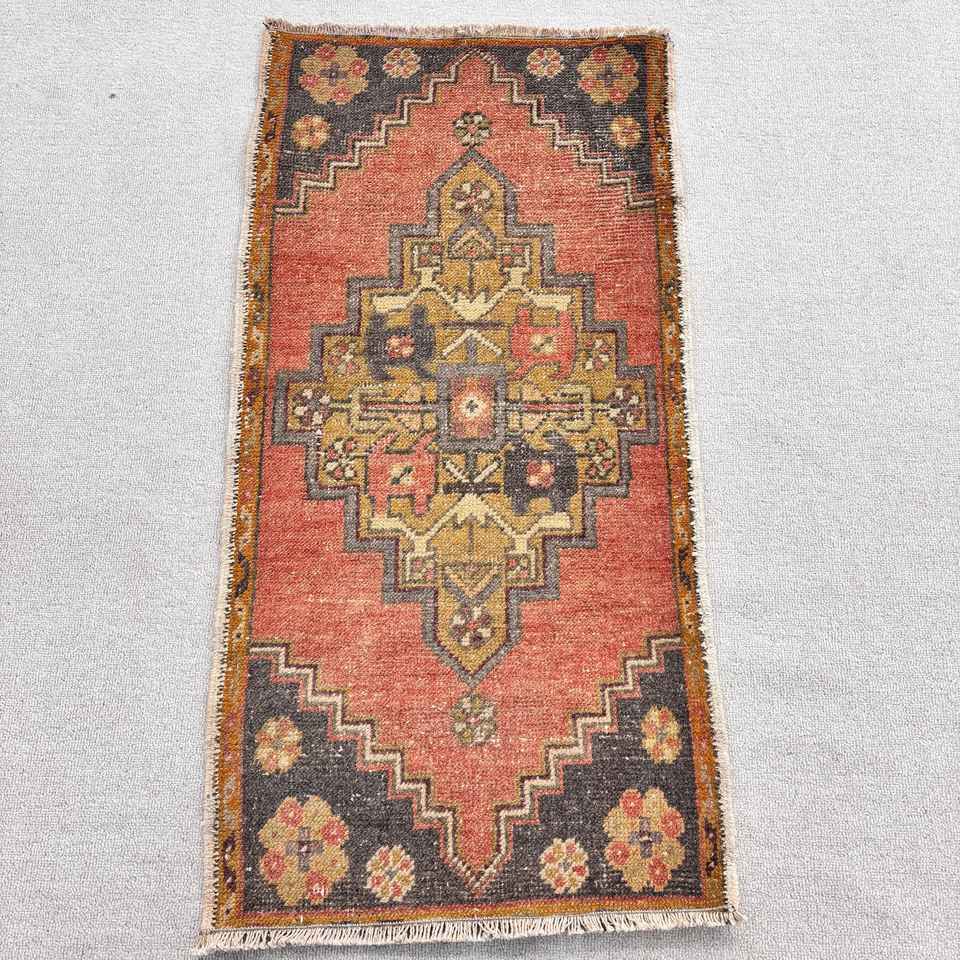 Alfombra Vintage de 1.7x3.4 pies, Alfombra Turca Pequeña, Alfombra de Lana Roja Ombré