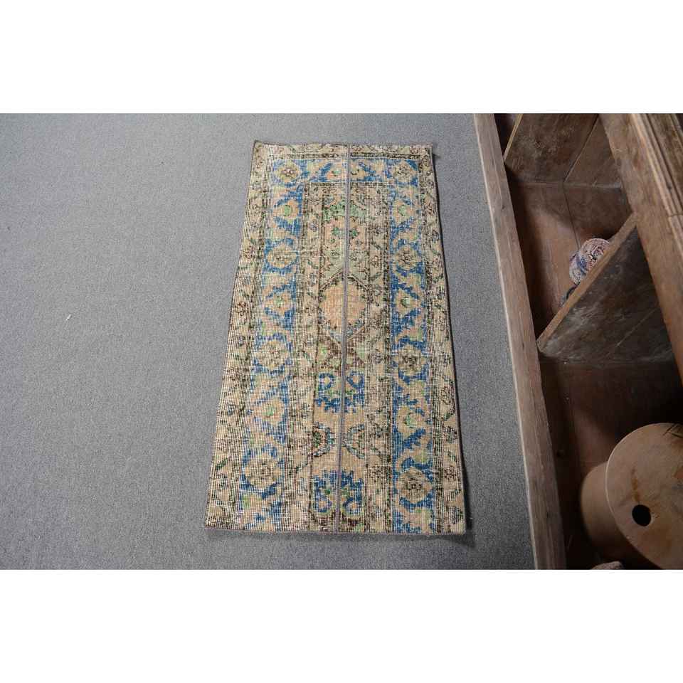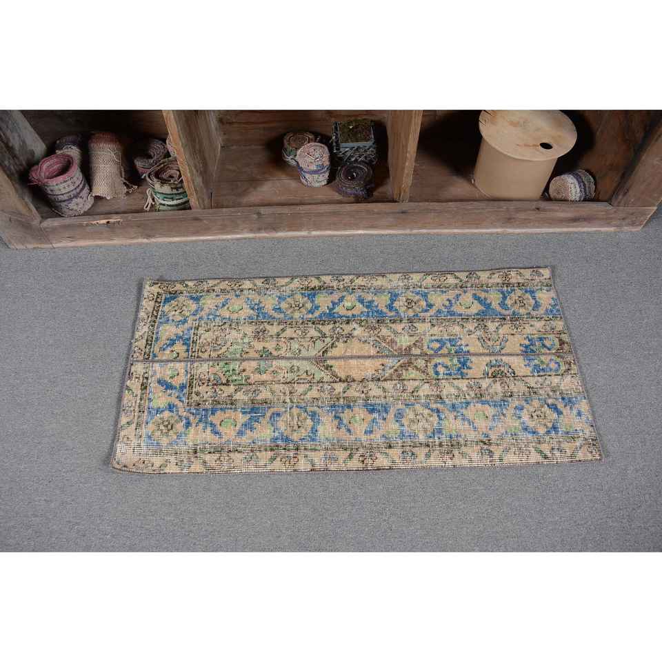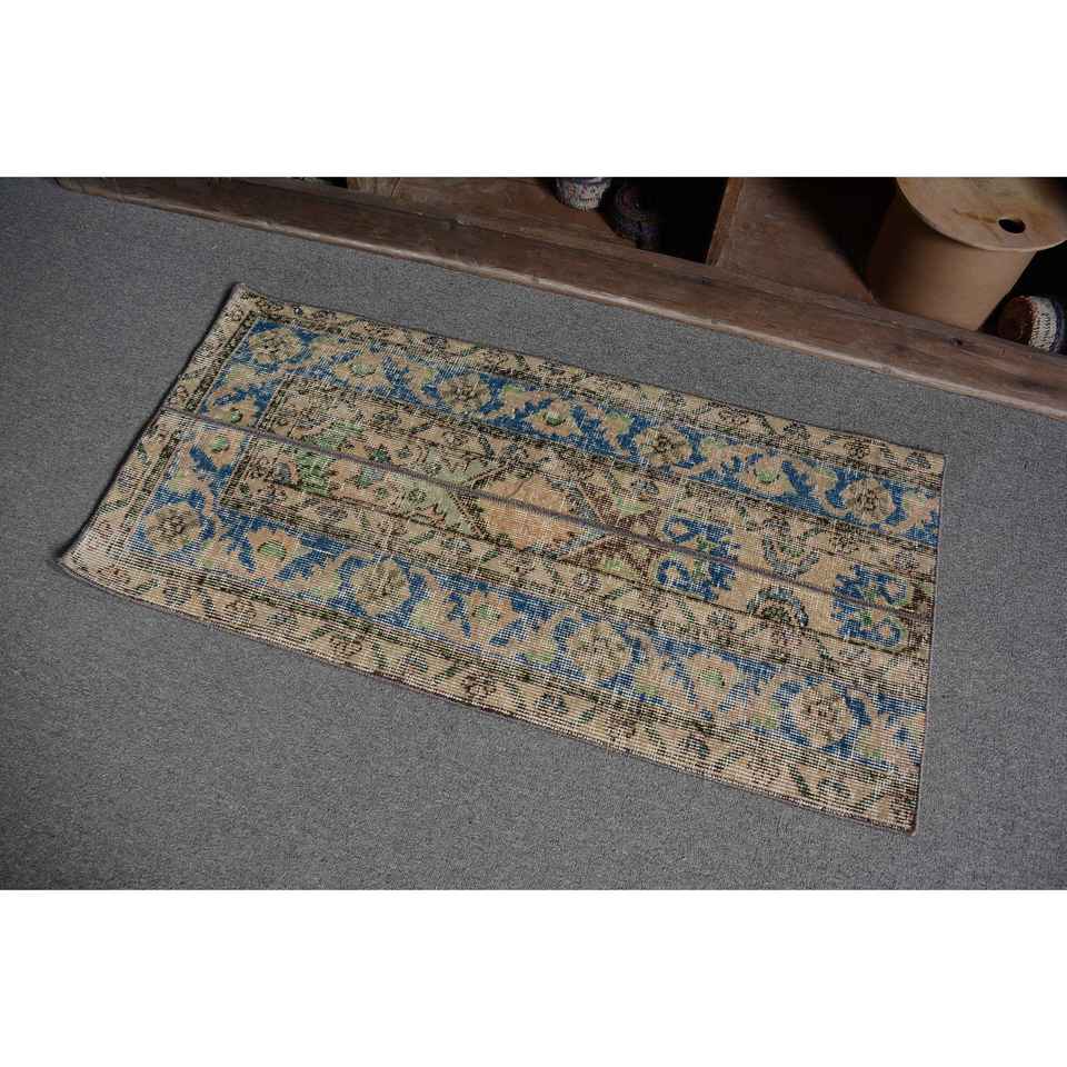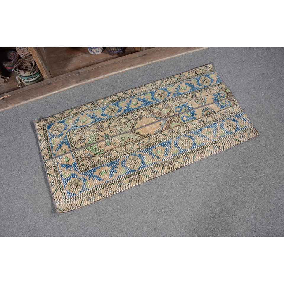 Alfombra Turca de 1.7x3.5 pies, Alfombra de Lana Vintage Azul Abstracta