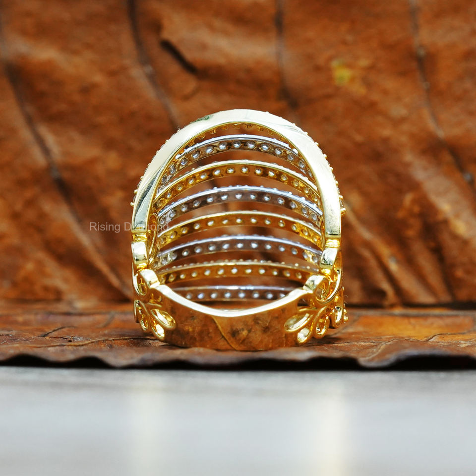 Anillo de Compromiso con Diamante Cultivado en Laboratorio de 1.8 CTW, Corte Redondo, Oro Amarillo de 14K, Estilo Bohemio, Certificado IGI, Engaste de Media Eternidad con Múltiples Pavé
