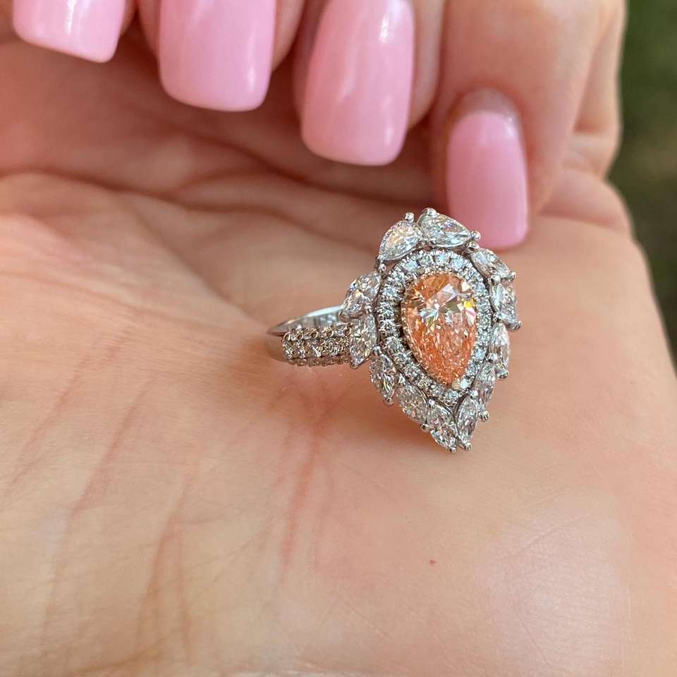 1.86ctw Fancy Vivid Pink Pear Lab-grown Fancy Vivid Pink Diamond en su centro Diamond Sunburst Ring, Luminous 14K White Gold
