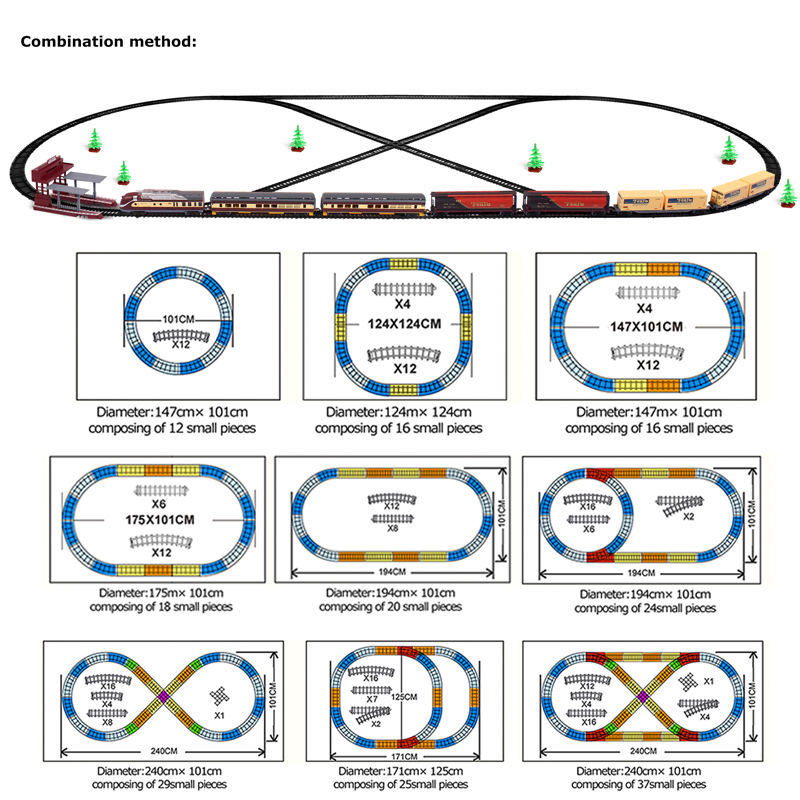 Detalles del embalaje:10 juegos en una caja de cartón para juguetes de tren de pista B/O con luz y música.