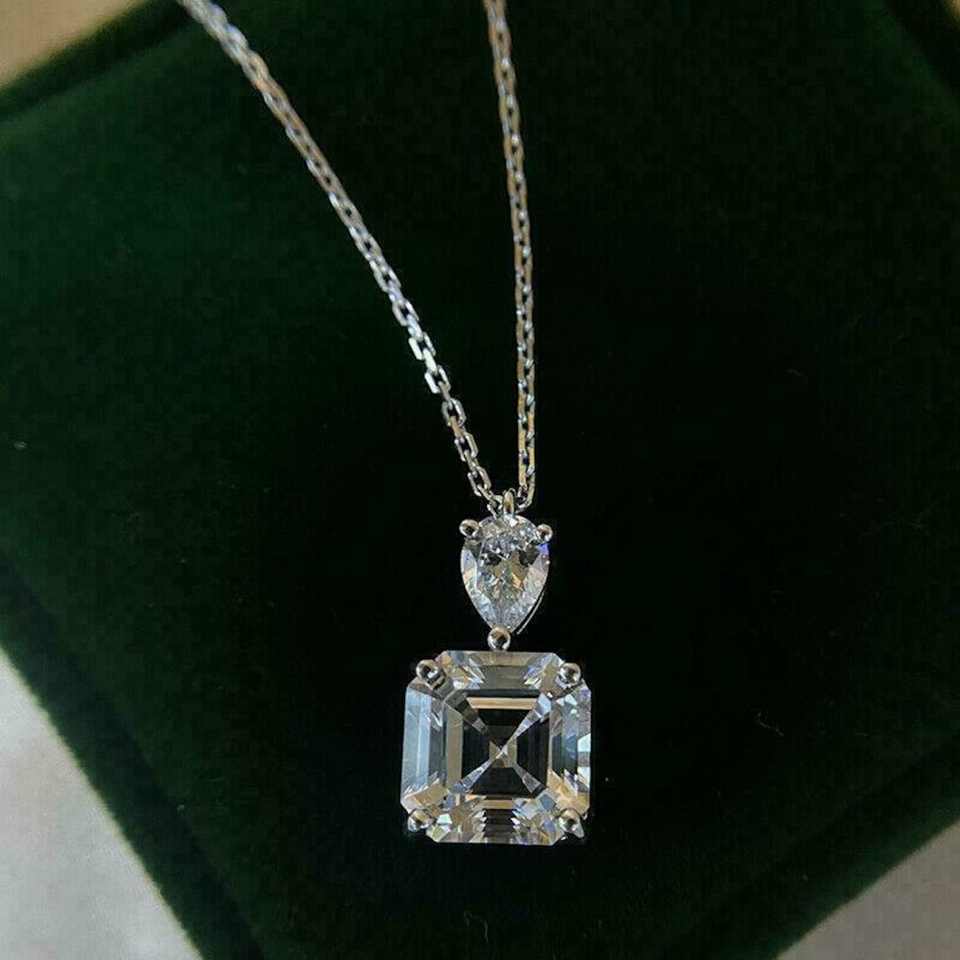 1,89 TCW incoloro Asscher y corte de pera Moissanite colgante de dos piedras 925 encanto de plata esterlina