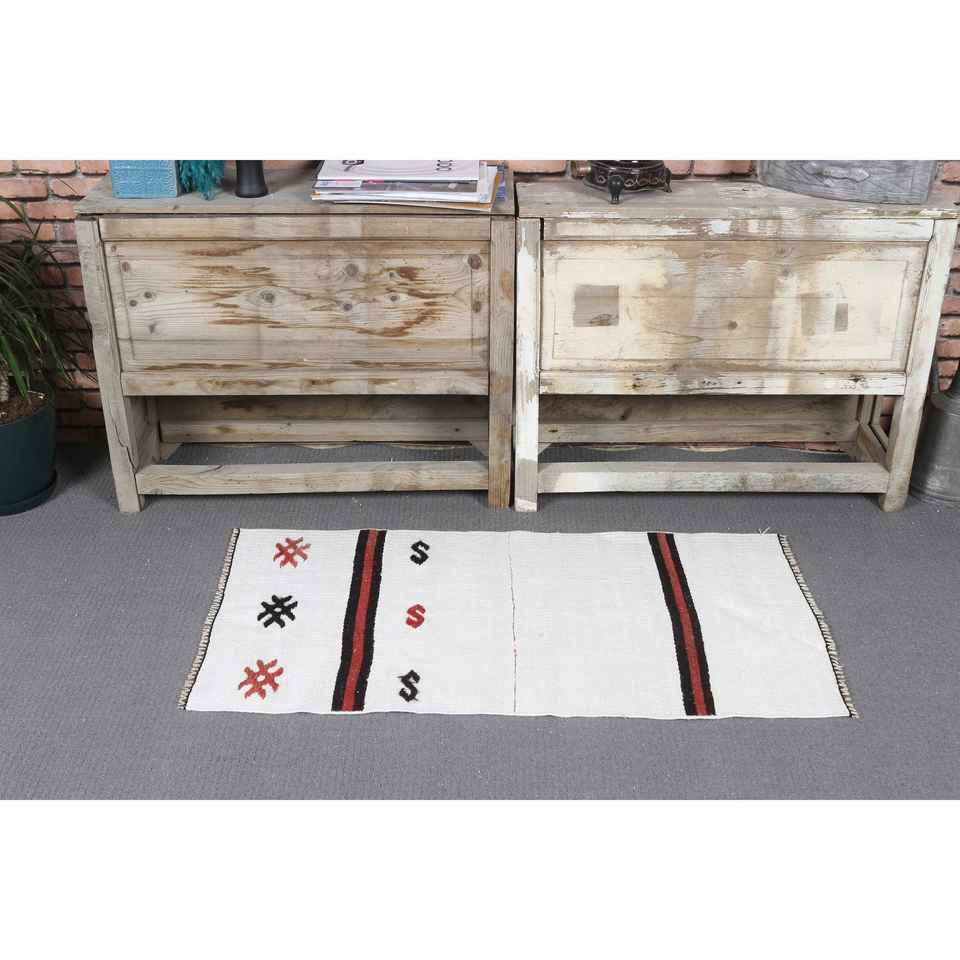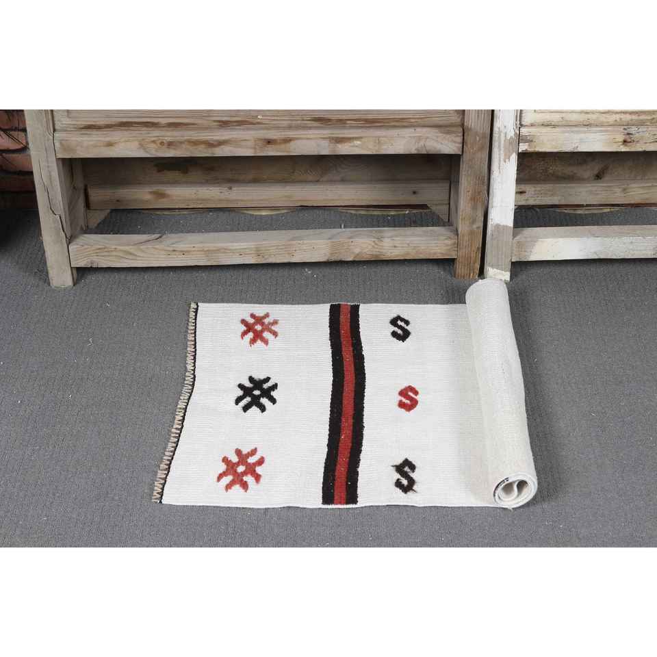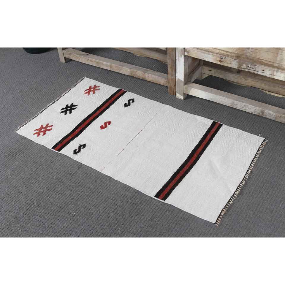 Alfombra Turca de 1.8x3.5 pies, Alfombra Pequeña Vintage, Alfombra con Borde Blanco